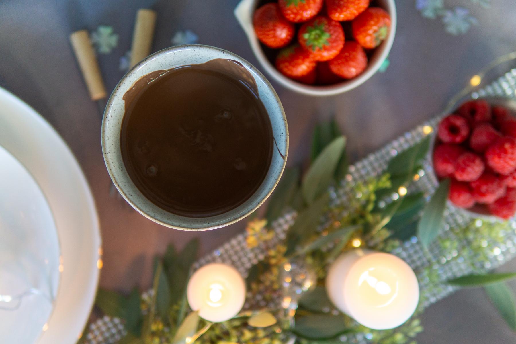 Denn als Dessert gibt es bei uns….Trommelwirbel bitte…ein Schokoladenfondue! Ich meine was gibt es leckereres als mit warmer Schokolade überzogene Früchte?