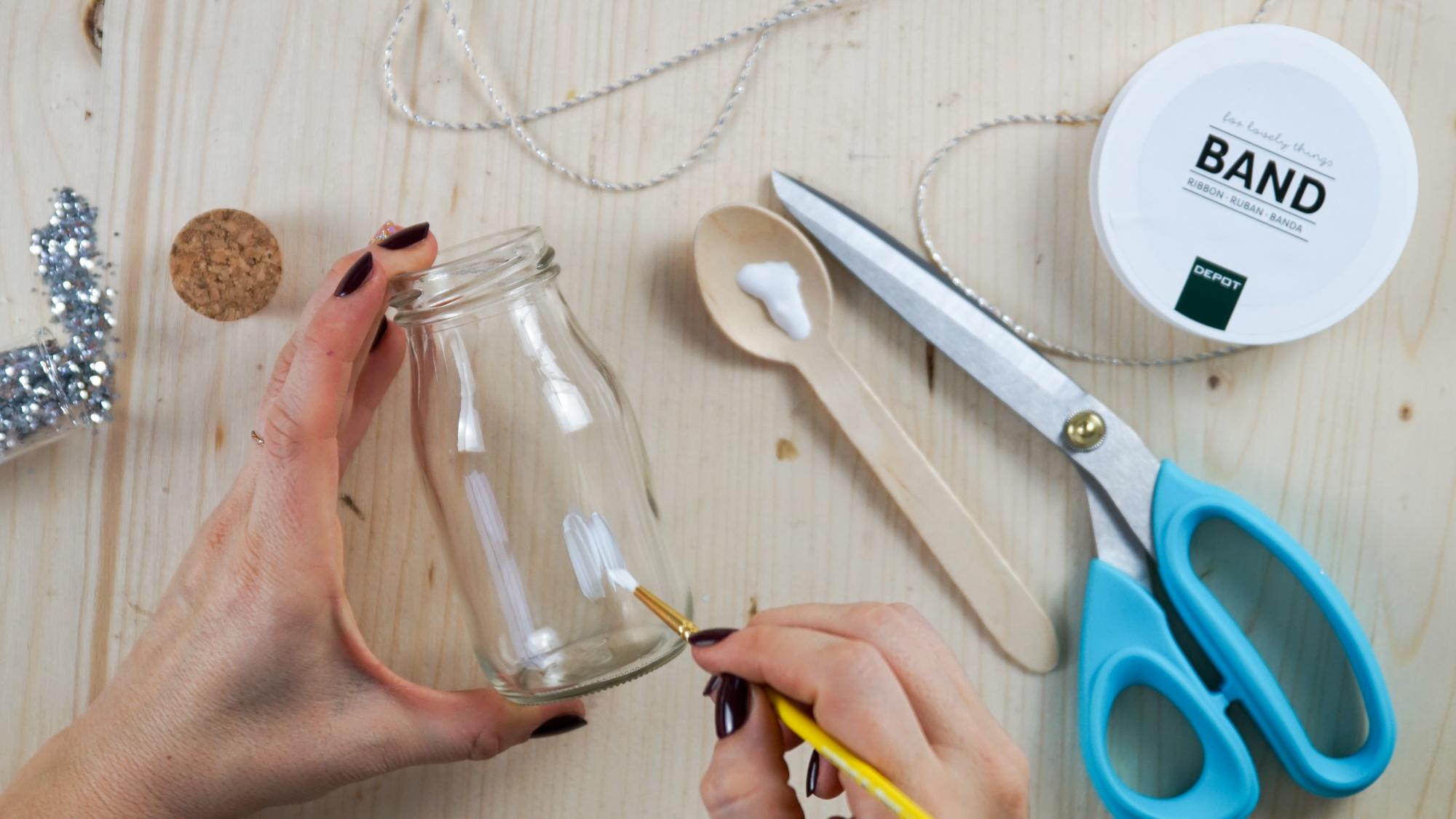 …und wer sagt denn, dass man Sekt nur aus Sektgläsern trinken sollte? Wir haben noch kleine „Milchflaschen“ von Halloween übrig gehabt und diese habe ich im Nu mit etwas Glitzer und Kleber silvestertauglich gemacht.