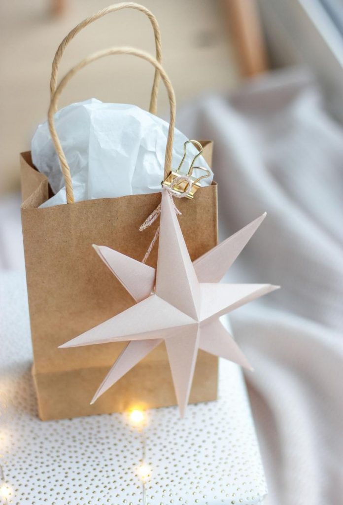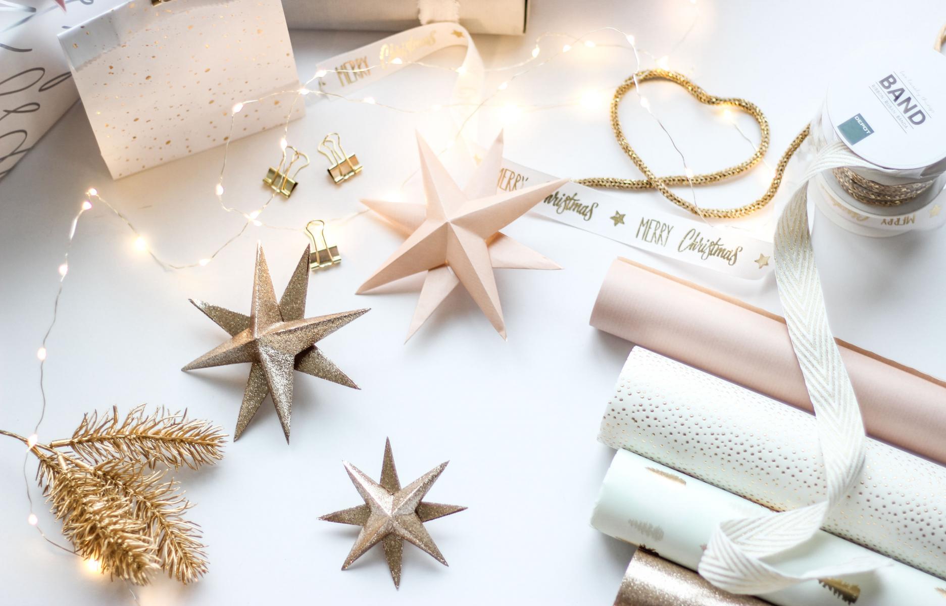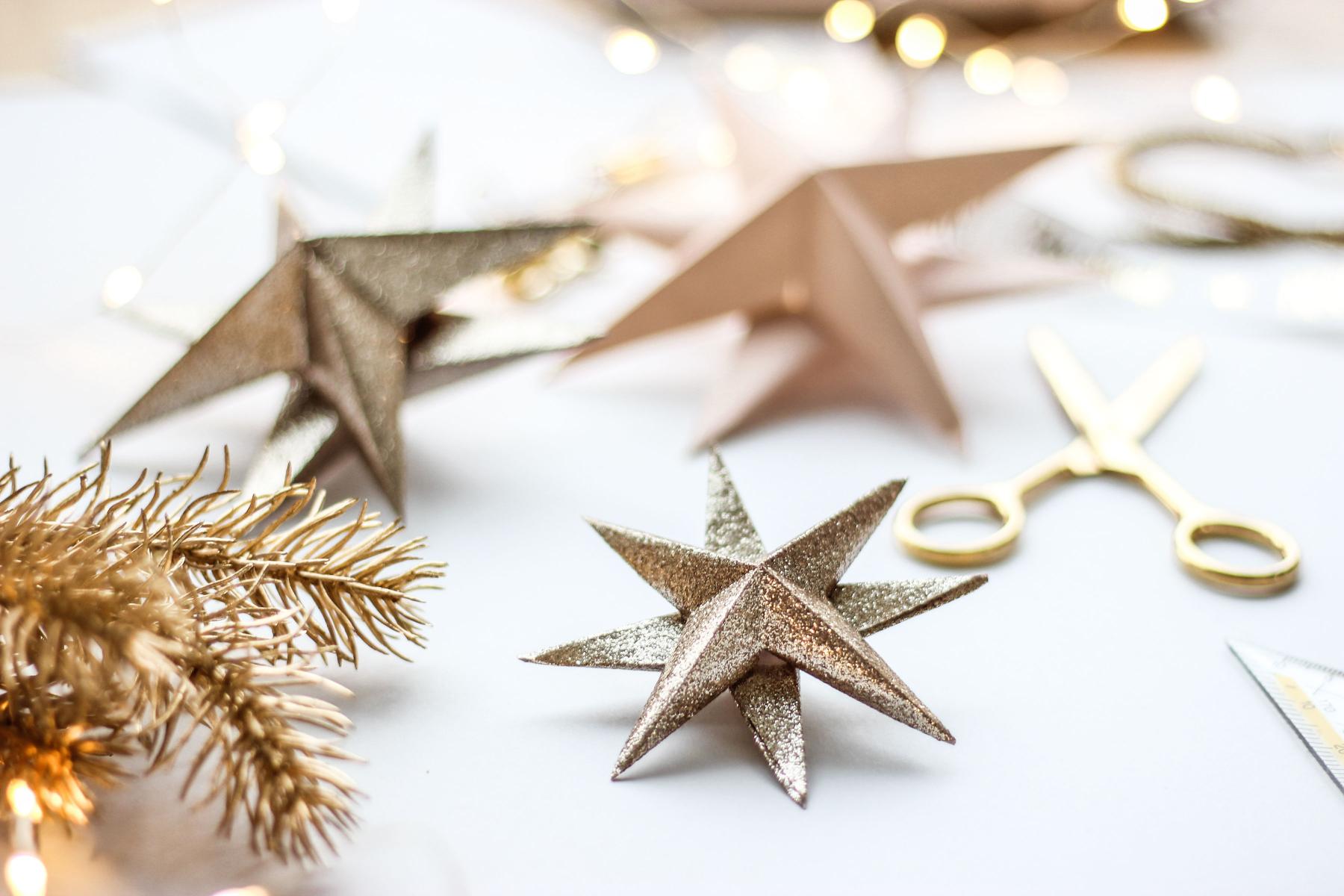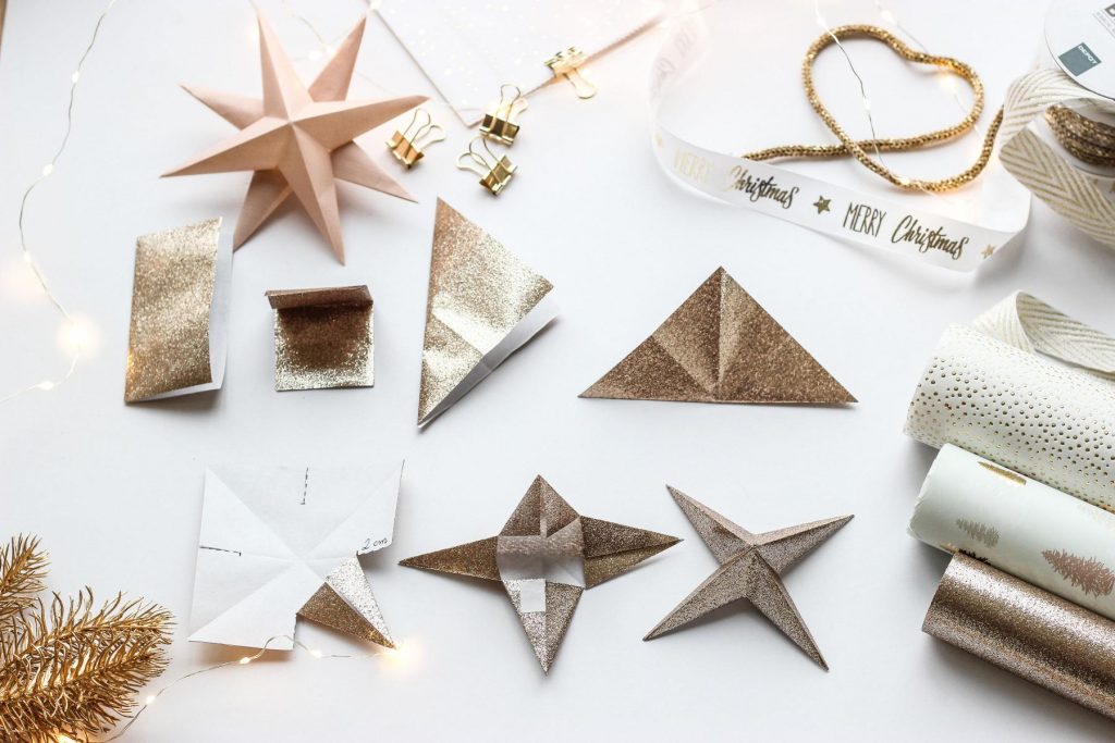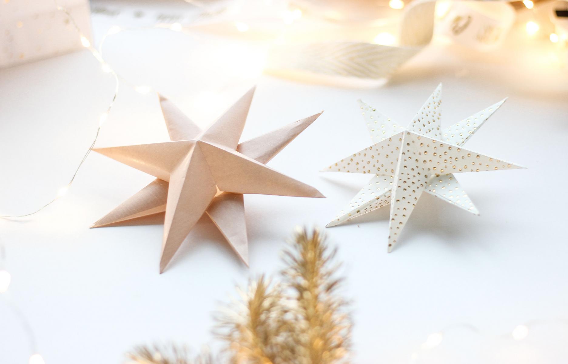 Ich zeige euch wie ihr weihnachtliche Anhänger in Form von 3D-Sternen ganz leicht selbst machen könnt und zwar aus dem was ihr ohnehin braucht – Geschenkpapier.