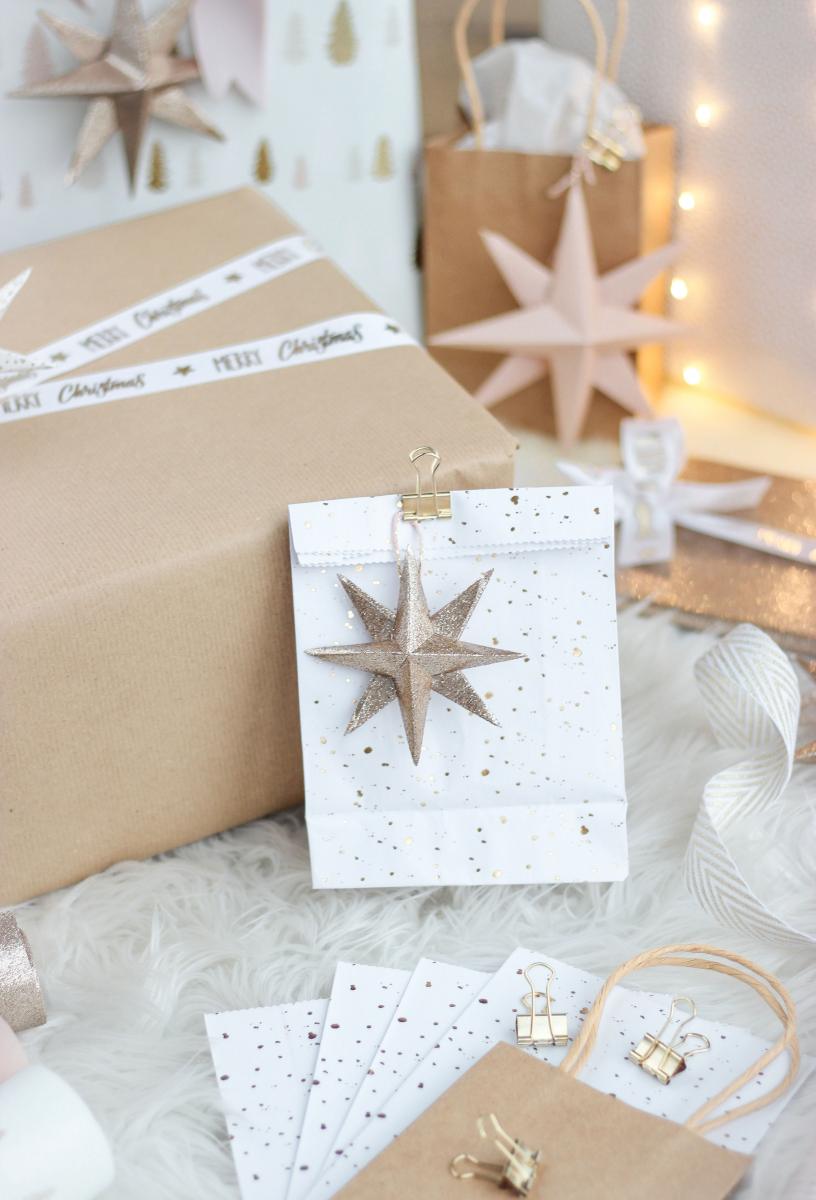 Übrigens eignen sich die schönen goldenen Klammern, mit denen ich die Sterne an den Geschenktüten befestigt habe auch super, um die Geschenkpapierrollen ordentlich zu verstauen.