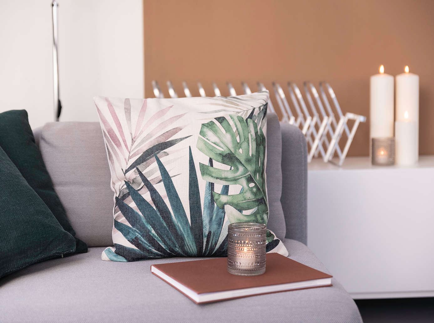 - Kissen: Sie sorgen für Gemütlichkeit und bieten eine Möglichkeit temporäre Farbe in die eigenen vier Wände zu bringen: Kissenbezug „Leaves“ und Kissen „Simply“ in Dunkelgrün