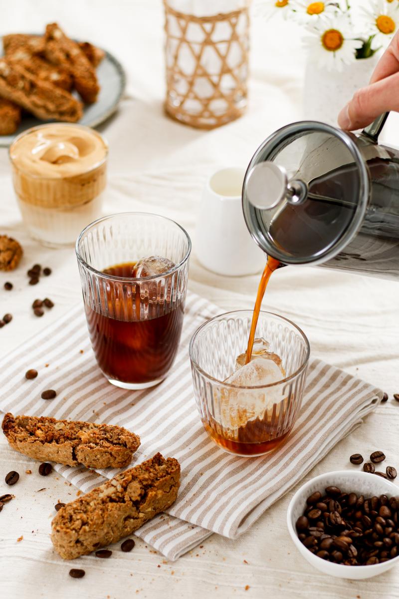 Heute gibt es cremigen Dalgona (ich glaub dieses Getränk hat mittlerweile jeder auf Instagram gesehen), erfrischenden Cold Brew Eiskaffee und als finalen Wachmacher knusprige Walnuss-Biscotti. Da sagen wir nicht Nein, oder?