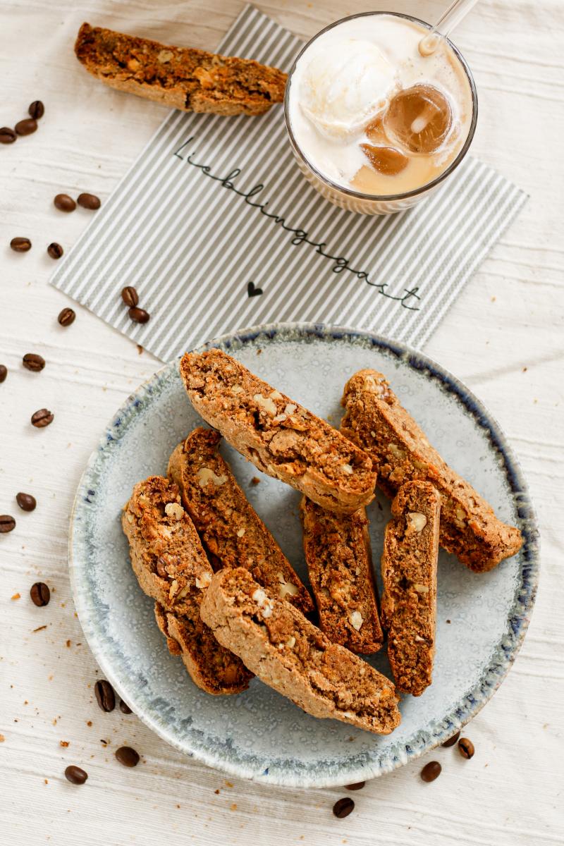 Der Sommer steht in den Startlöchern und wir sind sowas von bereit für eisgekühlte Kaffeegetränke. Kaffeespezialitäten wie Cold Brew Eiskaffee und Dalgona sind total im Trend. Passend dazu backen wir uns super leckere und super einfache Walnuss Biscotti.