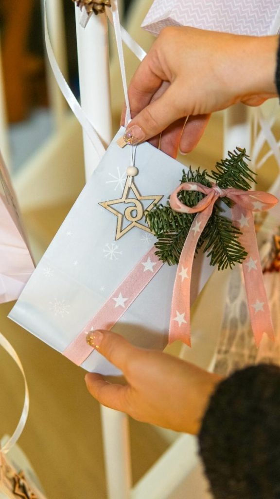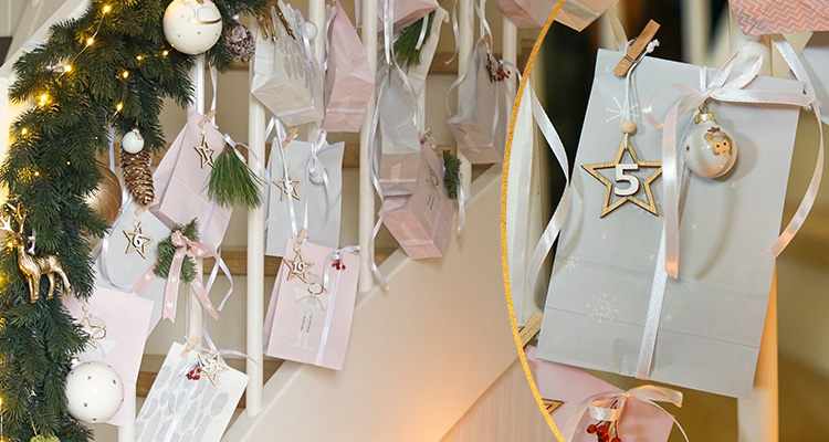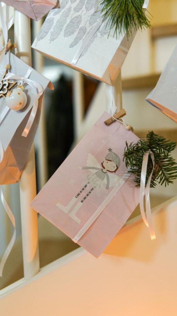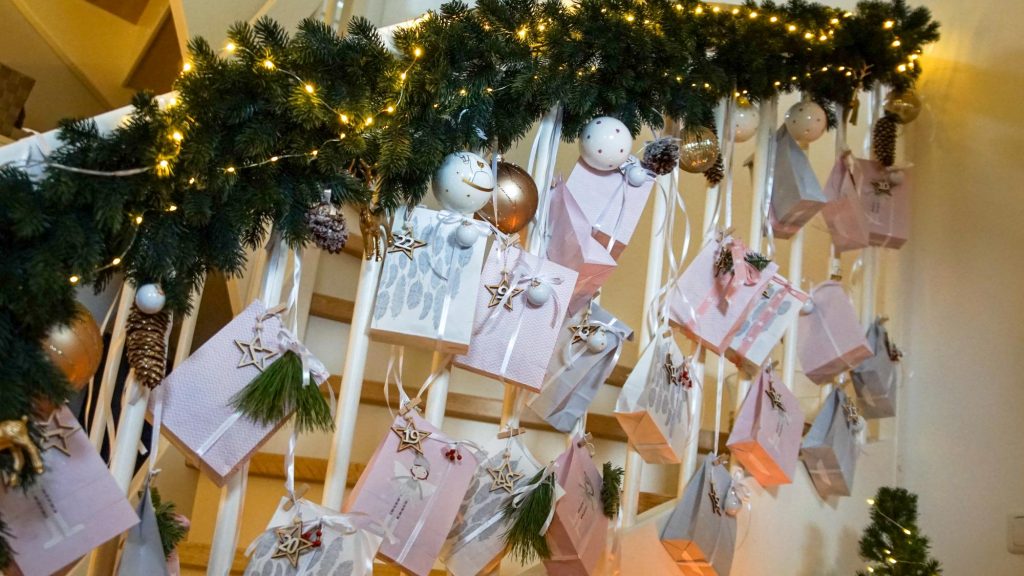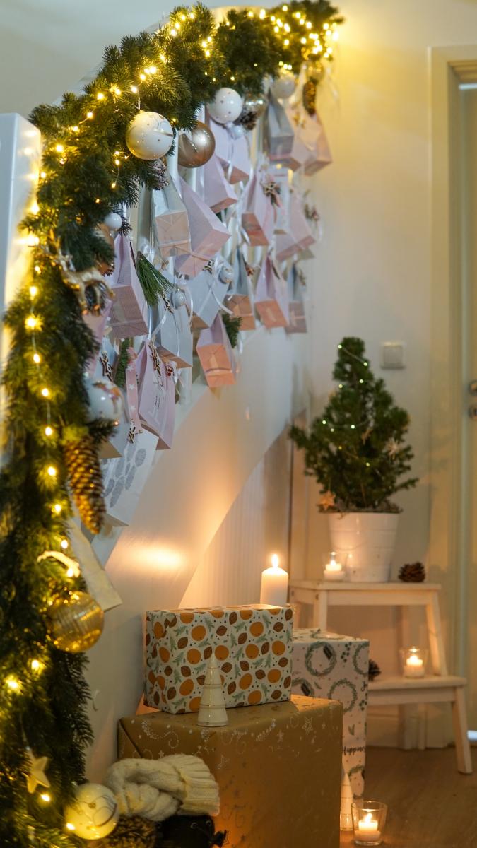 Ist die Tannengirlande fertig dekoriert, kann es an das Befüllen des Adventskalenders gehen.