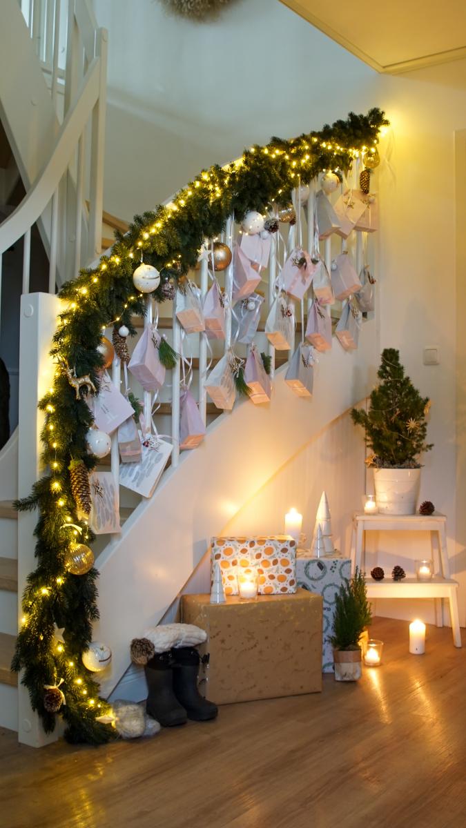 Angebracht habe ich die Girlande an der Seite des Handlaufs, damit dieser nicht zugedeckt wird und weiterhin der Sicherheit dienen kann.