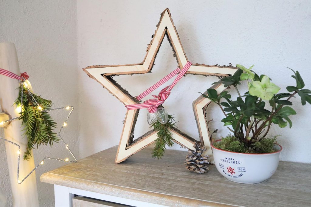 - Dekomaterialien aus Naturmaterialien wie Holz, z.B. in Form von Sternen aus Birkenholz und/oder Strohsternen