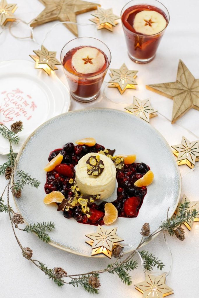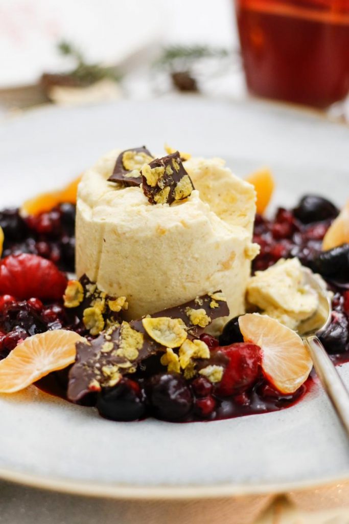 Jedes Jahr überlege ich mir aufs Neue ein neues, aber immer simples Dessert für die Weihnachtstage. Am allerliebsten mögen wir die Kombination aus einem cremigen Parfait, einem fruchtigen Kompott und pssst…. Schokolade.