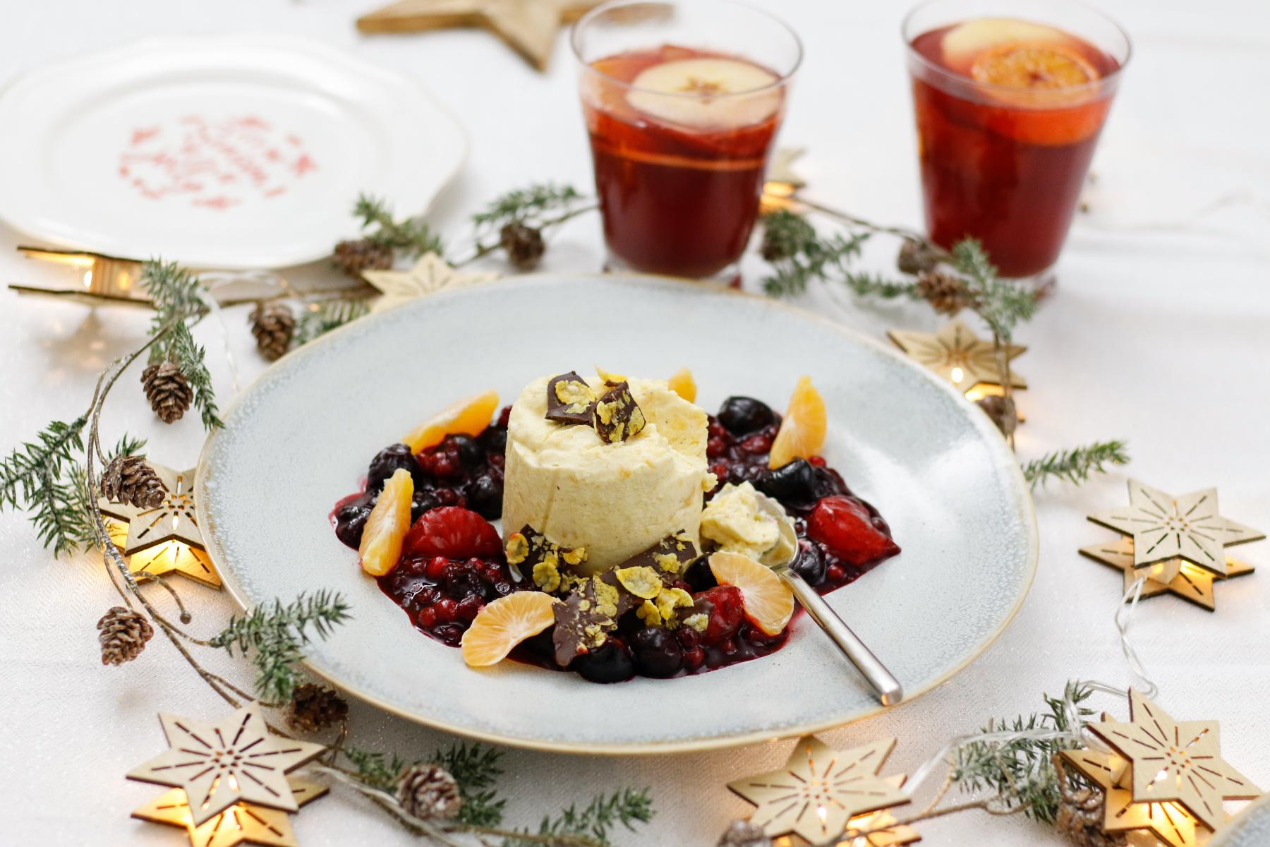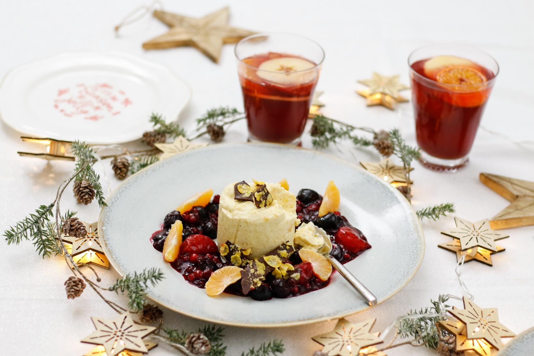 Jedes Jahr überlege ich mir aufs Neue ein neues, aber immer simples Dessert für die Weihnachtstage. Am allerliebsten mögen wir die Kombination aus einem cremigen Parfait, einem fruchtigen Kompott und pssst…. Schokolade.