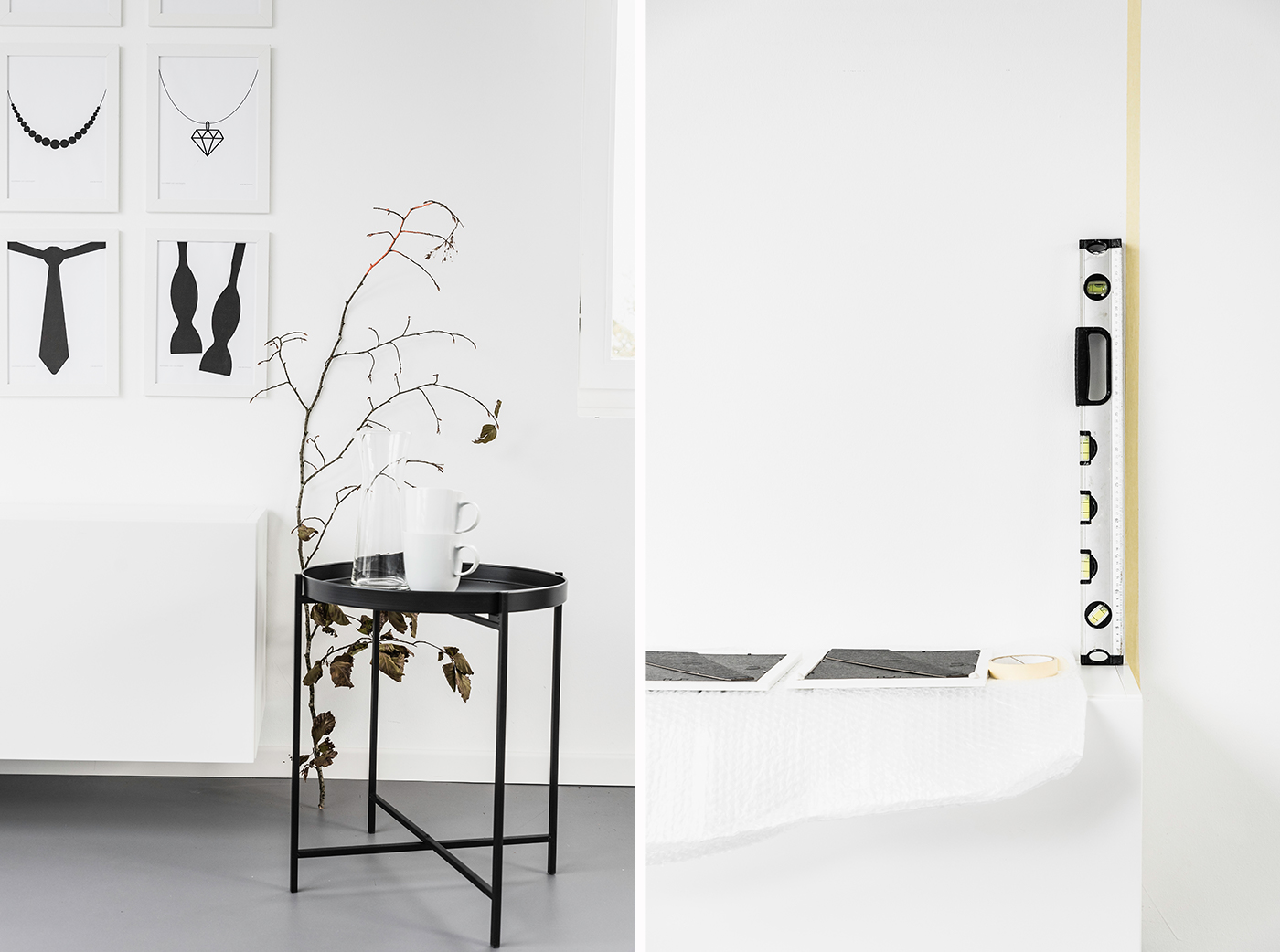 Die Planung ist abgeschlossen, jetzt sollen die Bilderrahmen an die Wand. Jetzt heißt es nochmal Maß nehmen, damit der Nagel oder die Schraube auch an der richtigen Stelle sitzt.