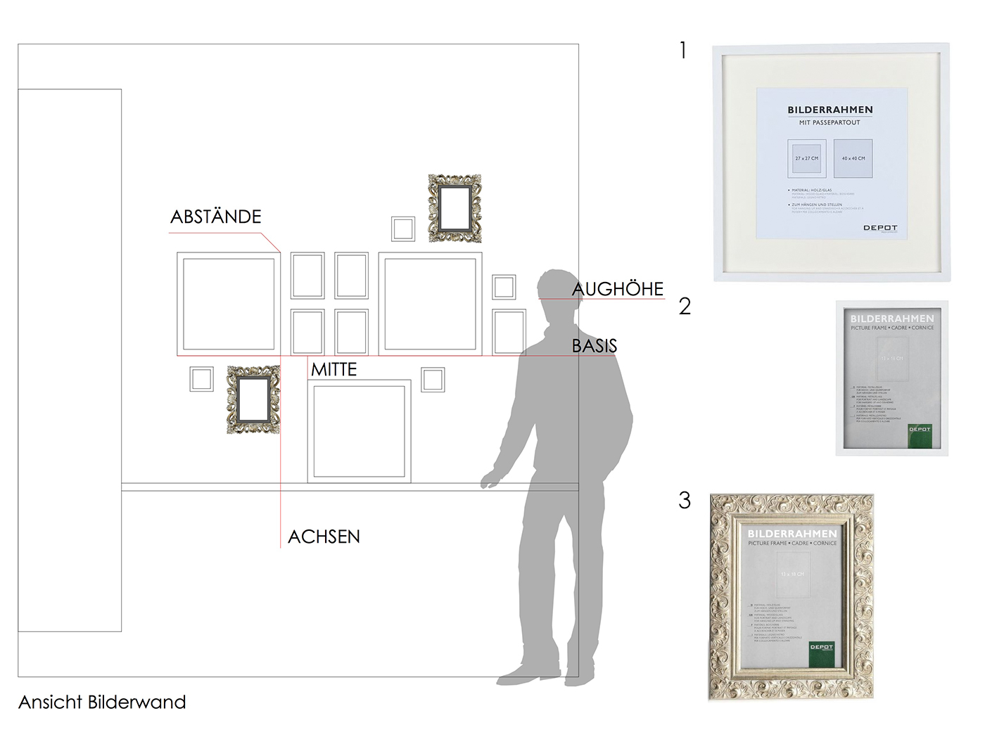 Für die Planung der Bilderwände, die ihr auf den Zeichnungen seht, habe ich Bilderrahmen von DEPOT verwendet: