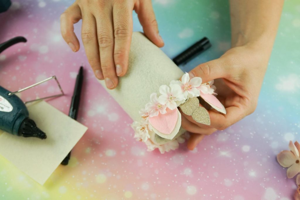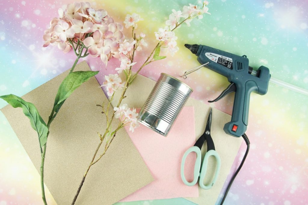 - Was beim Einhorn nicht fehlen darf, ist der Blumenreif. Dafür schneiden wir vorsichtig die kleinen Kirschblüten vom Zweig und kleben sie einmal um den oberen Rand der Dose herum. Nun noch zwei Augen mit einem Flizstift aufmalen und fertig ist das DIY Geschenk zum Schulanfang!