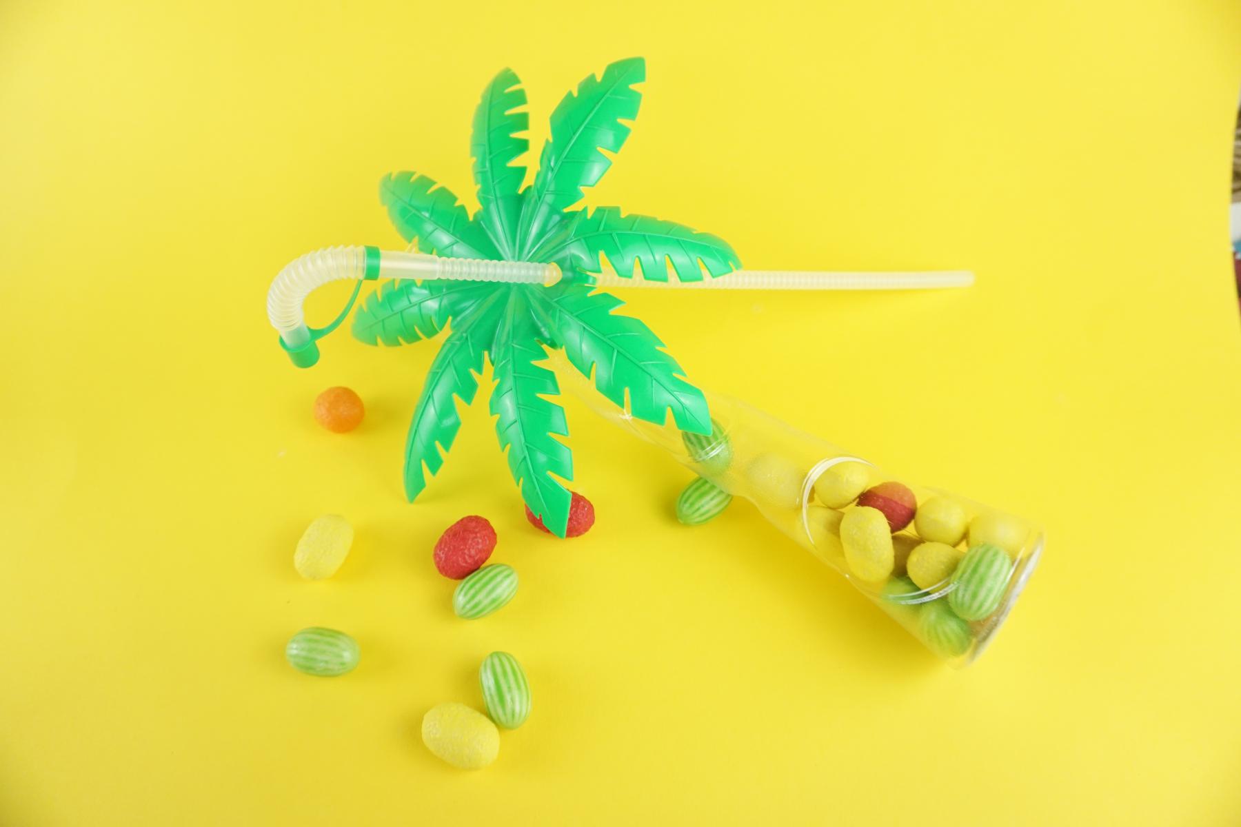 - Kennt Ihr noch die Kaugummis in Früchteform? Tatsächlich kenne ich diese witzigen Kaugummis aus meiner Kindheit. Und heute wie damals haben sie ihre magischen Anziehungskraft auf Kinder nicht verloren :) Übrigens wurde hier weiter gedacht und die Palme ist so konzipiert, dass man sie später als Trinkbecher nutzen kann.