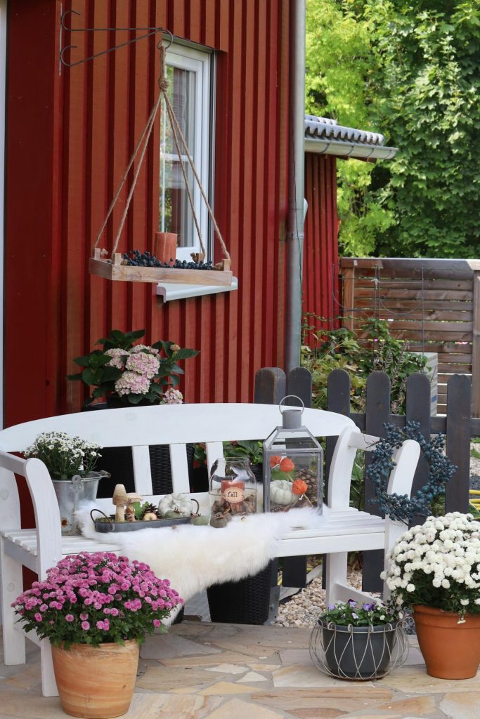 Ich mag den Herbst! Ja, ehrlich… Selbst als bekennender Sommerfan muss ich zugeben, dass auch der Herbst seinen ganz besonderen Zauber hat… Die kräftigen Farben von Blättern und Früchten, das raschelnde Laub und die warmen Altweibersommertage, an denen das Licht ein ganz besonderes ist, sanft und weichzeichnend. Aber ich mag den Herbst vor allem auch „dekotechnisch“, denn mit dem Herbst lässt sich einfach unglaublich toll dekorieren. „Mit dem Herbst?“ , fragt ihr euch jetzt vielleicht…“Ja, mit dem Herbst!“ Denn zu keiner anderen Jahreszeit liefert die Natur selbst mehr Dekoschätze als jetzt. Das harmoniert einfach perfekt mit unserem roten Schwedenhaus und dem skandinavischen Landhausstil. Wir starten also mit dem Außenbereich und zaubern uns eine tolle Herbstdeko für draußen.