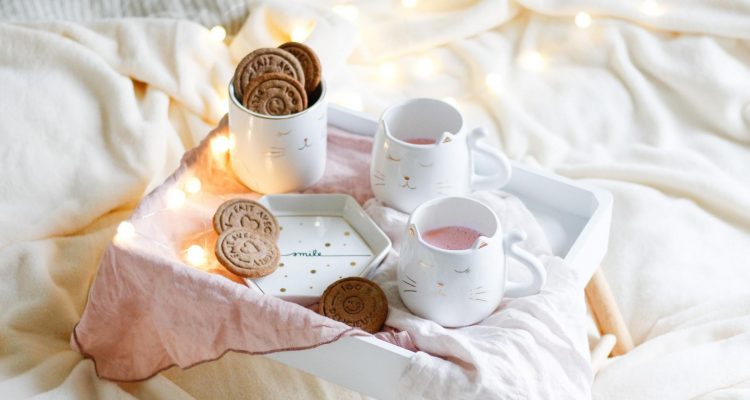 Kleine Desserttellerchen sorgen dafür, dass die Kekskrümel beim Filmeabend nicht im Bett landen.
