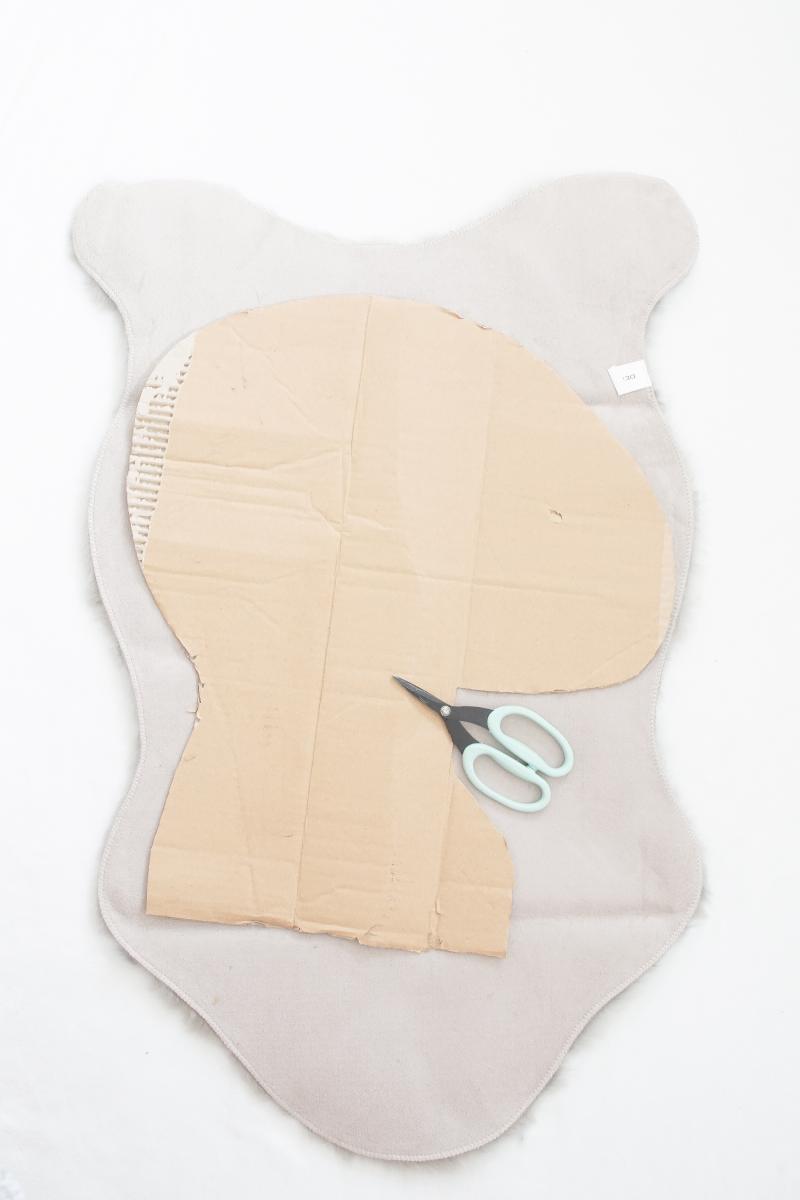 - Schritt: Lege dann die Schablone auf die Rückseite des Fells und zeichne die Umrisse nach.