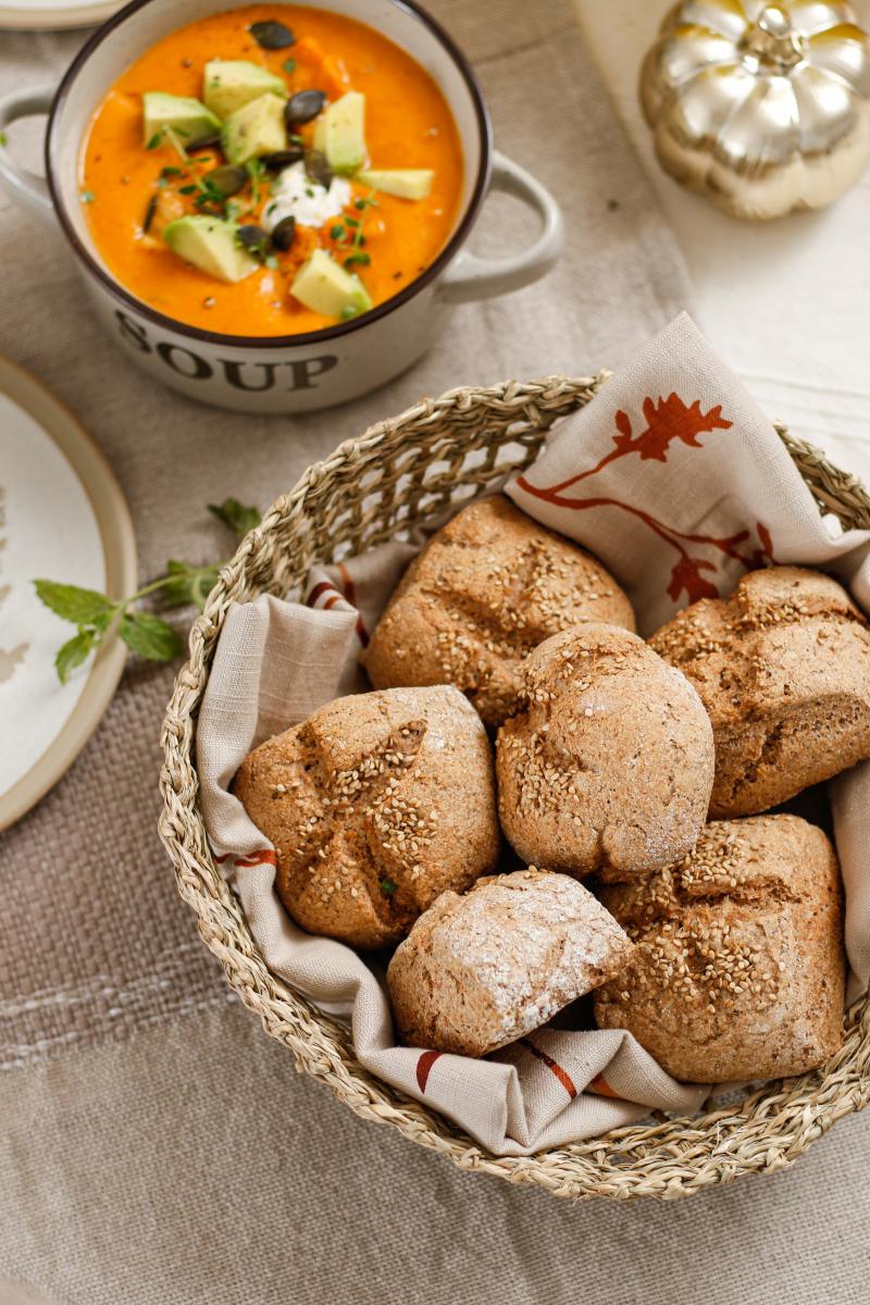 Diese hübschen Brötchen sind in Nullkommanix zusammengerührt und backen sich fast von selbst. Wie sonst so oft bei Roggenbrötchen brauchen wir hier keinen Sauerteig – so steht dem spontanen Brötchenbacken nichts im Wege. Nur ein paar Zutaten, die ich immer im Vorratsschrank habe, werden zu einem eher weichen Teig verknetet und nach gut einer Stunde sind die Brötchen schon im Ofen. Das hört sich doch vielsprechend an und ist es auch.
