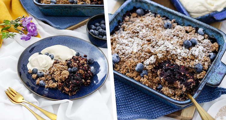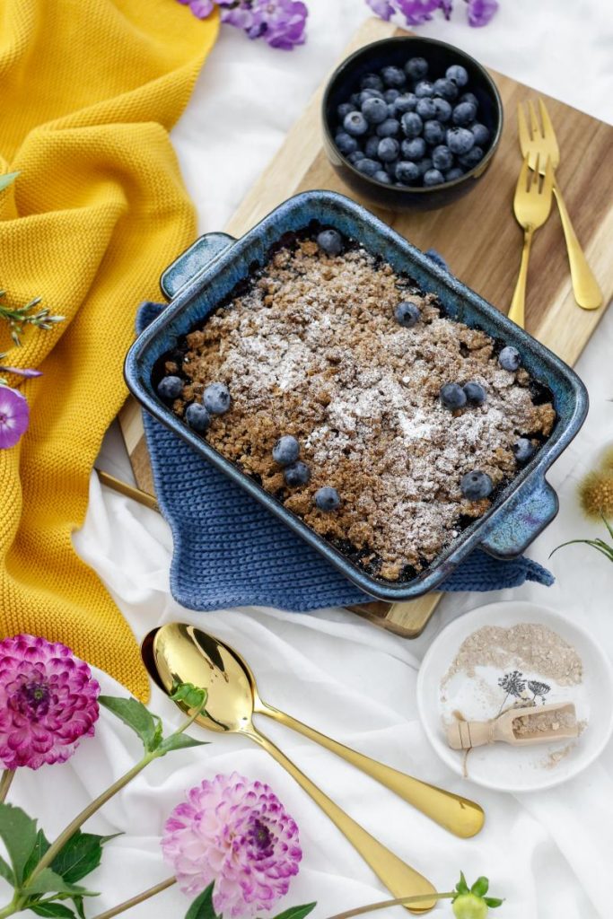 Wir mögen ihn alle sehr, diesen dunkelblauen Crumble, der sich jetzt zur echten Alternative zum beliebten Apfel-Crumble in unserem Nachtisch-Repertoire empor hob. Rezept? Natürlich! Also stellt schon mal eure Küchenwaage bereit und holt eure schönsten Auflaufformen hervor. Let’s get readyyy tooo cruuumbleee…