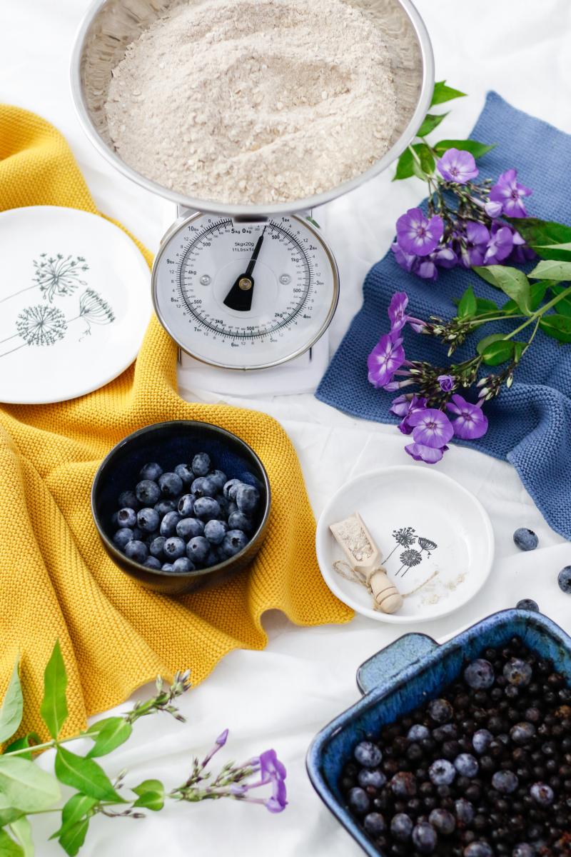 Kaum etwas entspannt mich so sehr wie das Backen, der Duft, der aus dem Backofen strömt und natürlich das anschließende Genießen. Ich habe ja schon Wasserhochstand im Mund, wenn ich an die blubbernden Heidelbeeren denke, nachdem sie eine knappe halbe Stunde unter buttrigen Haferflocken-Zimt-Streuseln in der Hitze des Backofens hinter sich haben und sich das himmlische Ricotta-Eis bereits vorfreudig die (eiskalten) Händchen reibt.