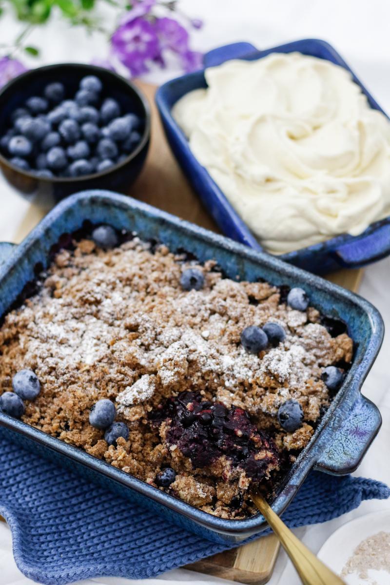 Crumbles sind etwas so seelenwärmendes und mit cremigen Eis und tiefblauen Heidelbeeren vom Markt kann der Herbst gerne kommen. Ich freue mich Jahr für Jahr auf diese goldene und kuschlige Saison. Wir sind auch bereit für kuschelige Abende zuhause, heiße Tassen Tee und leckere Auflauf Ideen!