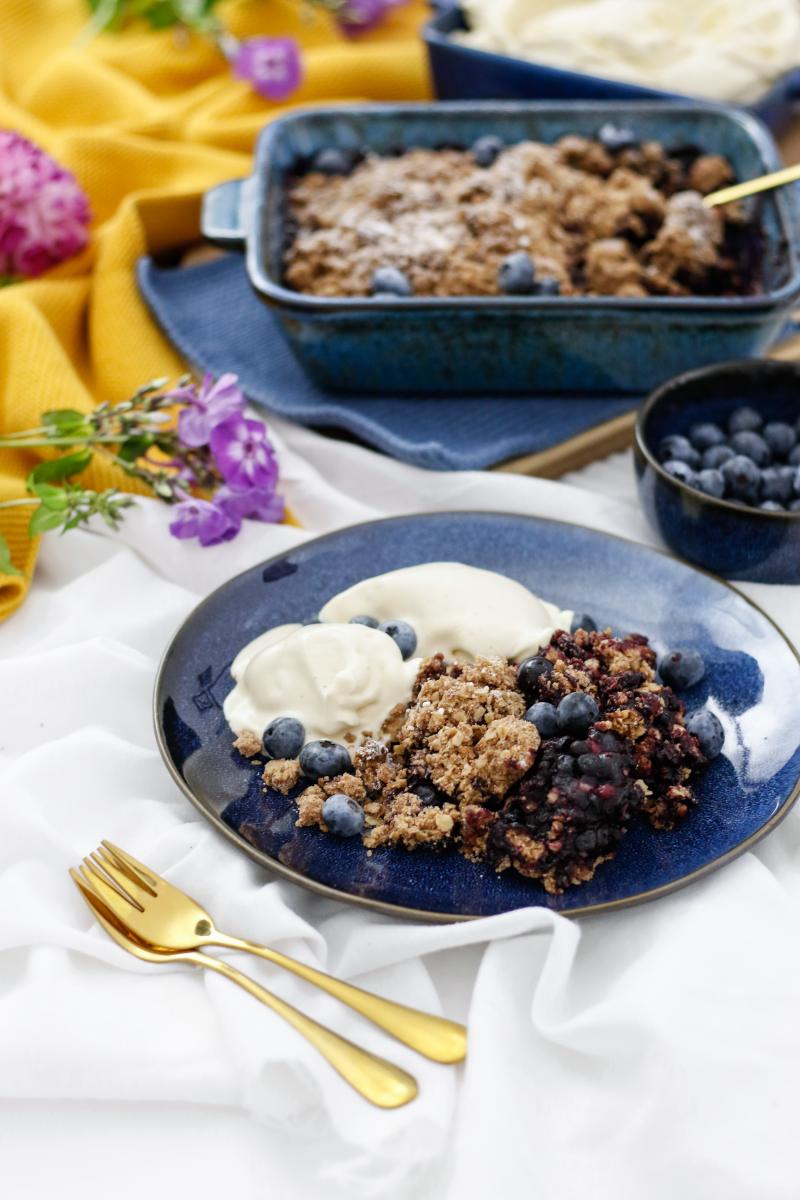 Wir mögen ihn alle sehr, diesen dunkelblauen Crumble, der sich jetzt zur echten Alternative zum beliebten Apfel-Crumble in unserem Nachtisch-Repertoire empor hob. Rezept? Natürlich! Also stellt schon mal eure Küchenwaage bereit und holt eure schönsten Auflaufformen hervor. Let’s get readyyy tooo cruuumbleee…