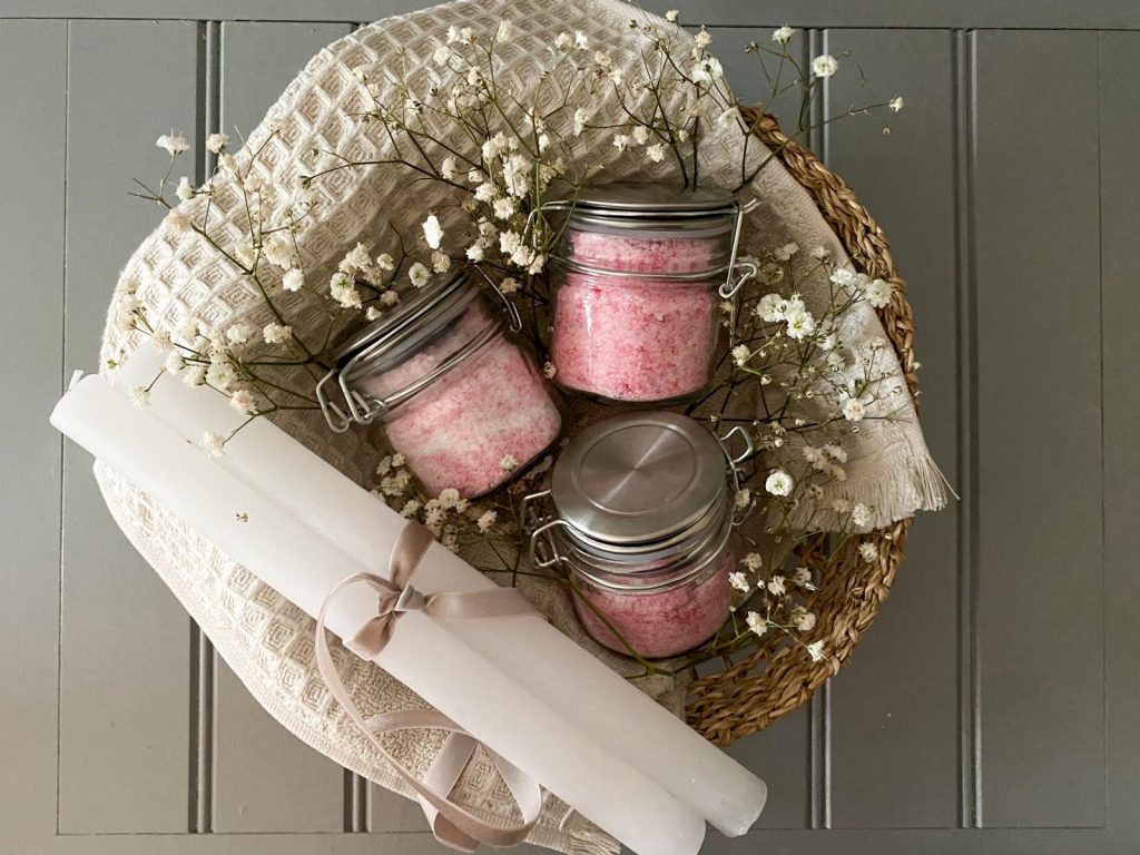 Kleiner Extra-Tipp: Wenn Ihr sowieso schon an der Badesalz-Vorbeitung seid, macht gerne noch ein paar Gläschen mehr. Denn ein selbstgemachter Badezusatz eignet sich auch toll als kleines Geschenk oder Mitbringsel!