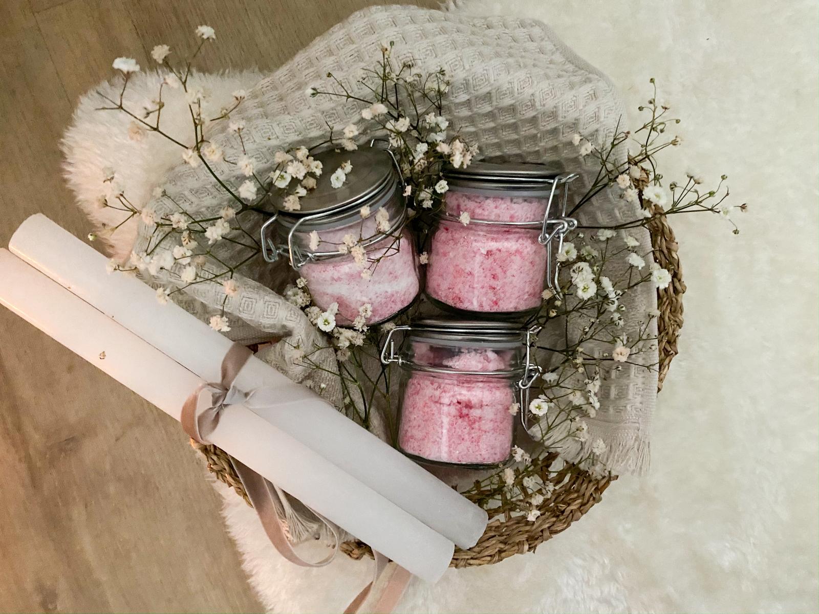 Kleiner Extra-Tipp: Wenn Ihr sowieso schon an der Badesalz-Vorbeitung seid, macht gerne noch ein paar Gläschen mehr. Denn ein selbstgemachter Badezusatz eignet sich auch toll als kleines Geschenk oder Mitbringsel!