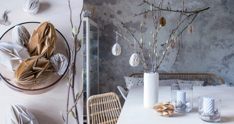 Back to Nature – der Interior Trend Naturmaterialien macht auch bei der diesjähigen Osterdekoration nicht halt. Als natürliche Osterdeko kommt der Trend mit Holzfuniereiern, Zweigen und schlichten Dekoaccessoires, wie Federn und einfarbigen Ostereiern in sanften Tönen daher.