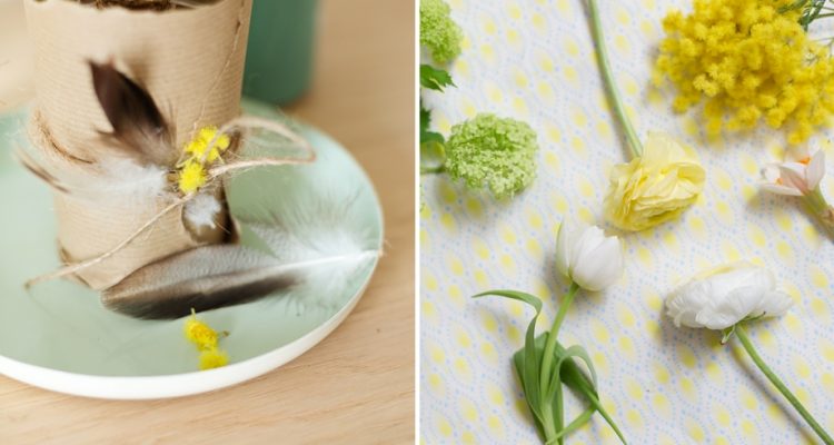 Ich habe mich bei meinem Arrangement für Mimosen als Begleiter der Blumenzwiebeln entschieden. Mit diesem strahlenden Gelbton hole ich mir auch an noch so trüben Tagen die Sonne in meine 4-Wände! Ihr könnt aber auch jeden anderen Frühlingsboten nehmen, der euch gefällt. Als Beispiel hab ich hier am Bild noch die Narzisse, den Schneeball, eine Tulpe sowie eine Ranunkel angeführt.