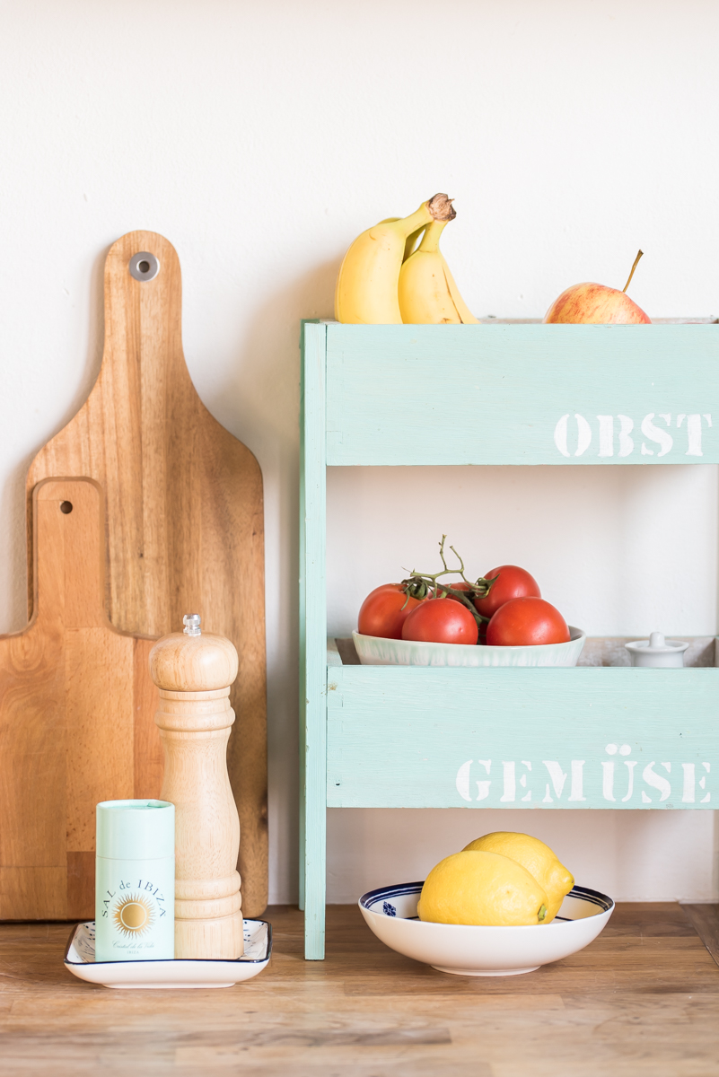 Die Etagere aus Holz für Obst und Gemüse habe ich selbst gebaut, die Anleitung dafür findet ihr hier auf dem Blog!