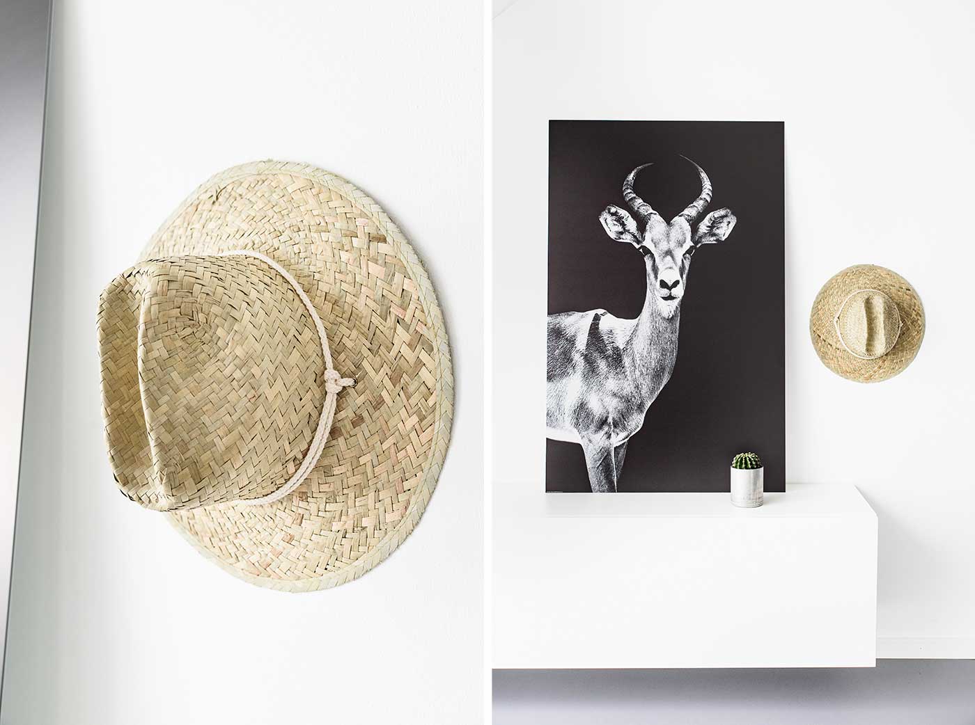 Der Sommerhut oder Strohhut kann einfach lässig auf einem Sideboard liegen, als hätten wir ihn vergessen wegzuräumen. Da liegt er nun und erinnert uns an feine Sommertage am Meer. Auch als Wanddeko macht der Sonnenhut eine gute Figur. Hängt den Hut einfach an die Wand. Großformatige Urlaubsfotos oder ein Kaktusableger sind passende Begleiter.