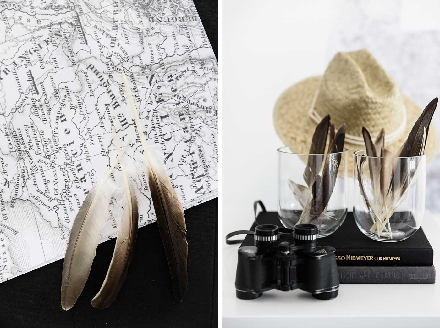 Federn sind ebenfalls beliebte Mitbringsel aus dem Urlaub. Auch diese Accessoires lassen sich wunderbar in Szene setzen.