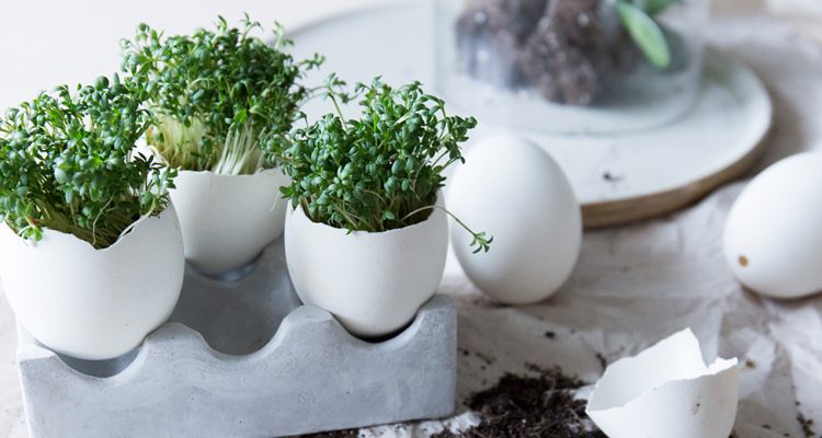 Da ist der Trend Inhouse Gardening genau richtig. So wird das Gärtnerglück einfach ins Haus geholt. Gerade um Ostern gibt es jede Menge Eier. Warum also diese nicht als kleine Anzuchttöpfchen oder Blumentöpfe nutzen.