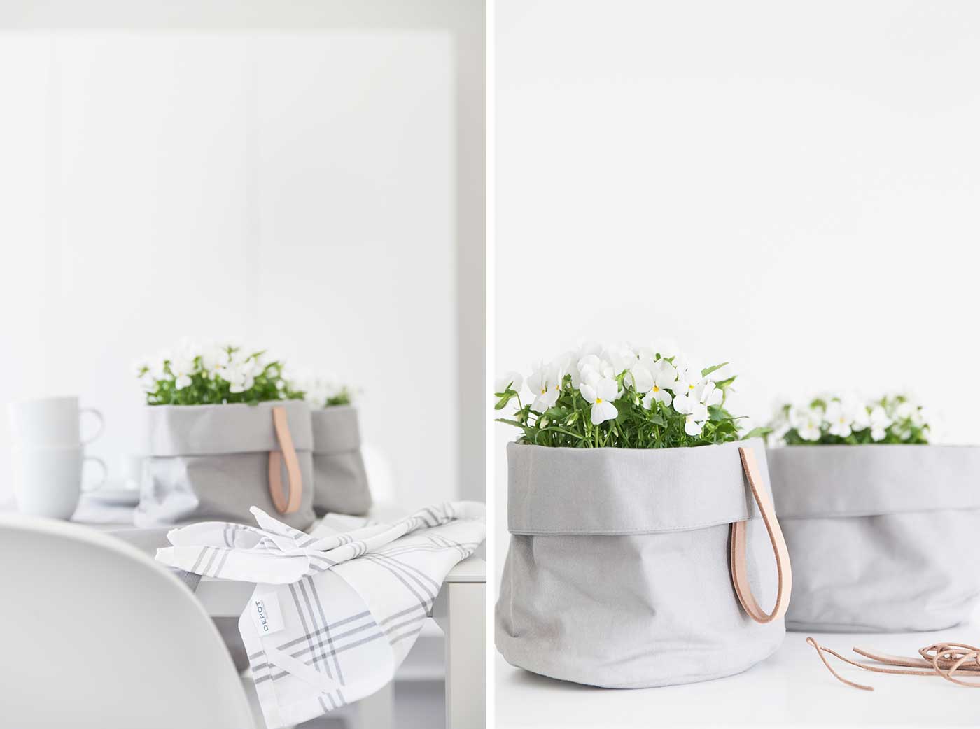 Die praktischen Brotkörbe aus fester Baumwolle von DEPOT nutze ich sehr gerne. Dieses Jahr kamen Sie im Biergarten einige Male zum Einsatz. Nun sollten die Brotkörbe ein Umstyling erfahren. Mit Lederriemen geht das natürlich sehr gut.