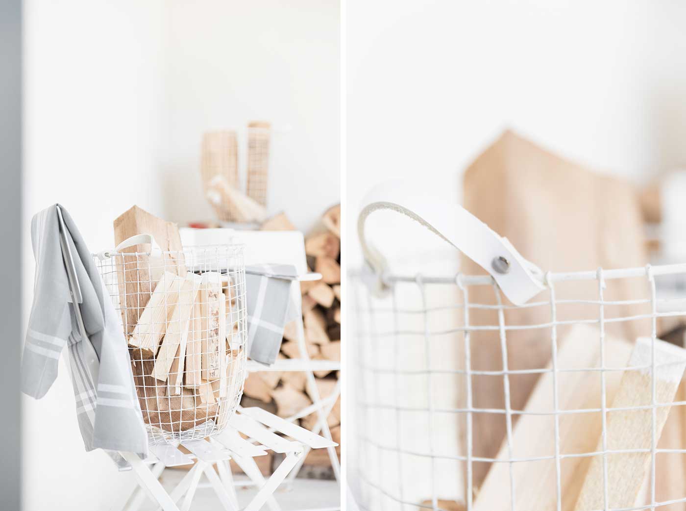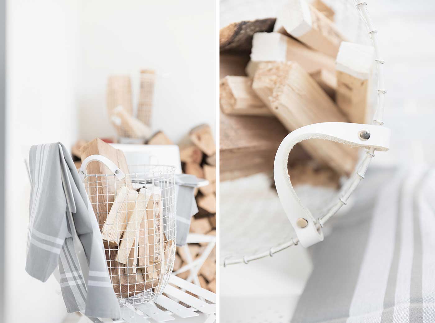 Deko: Anzündhölzer sehen in den Körben sehr schön aus. Im Sommer werden sie zum Blickfang auf dem Balkon. Ich hatte die Enden in weiße Farbe getaucht, so sieht das Anzünholz gleich noch viel stylischer aus.
