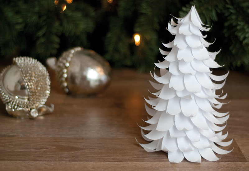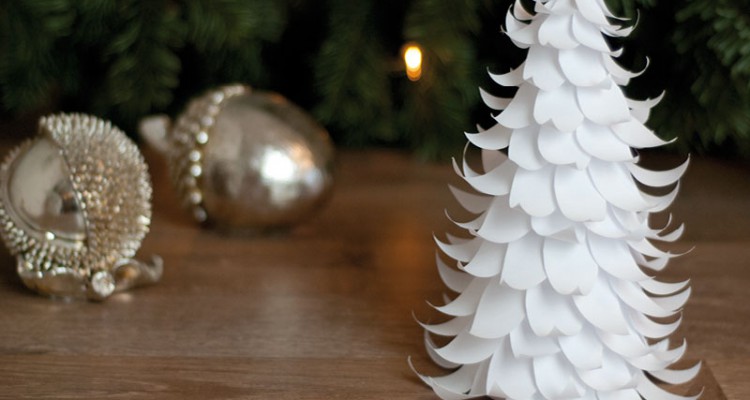 Mit normalem Kopierpapier und einem Kegel aus Styropor könnt Ihr Euch ganz einfach winterliche Tannenbäume für Eure Weihnachtsdeko basteln.