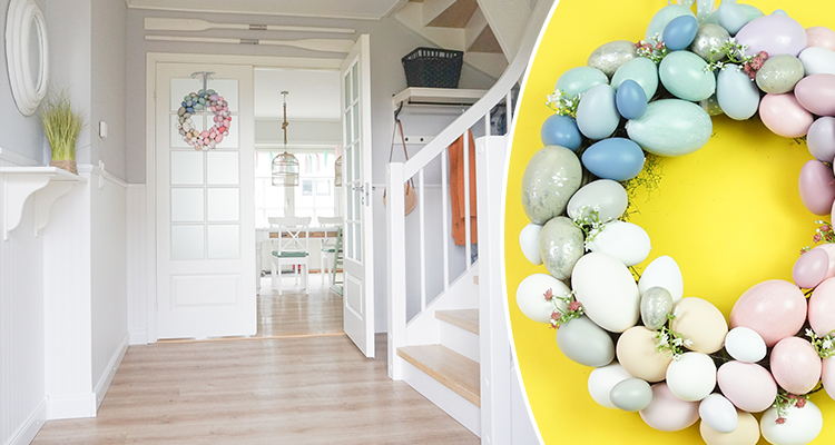 Ostern steht zwar nicht direkt vor der Tür, aber da mir bei dem Grau in Grau vor der Tür nach etwas Farbe ist, möchte ich zusammen mit Euch einen farbenfrohen Osterkranz basteln. Dabei muss ich zugeben: ich bin ein Kranz-Junkie. Kränze sind die optimale Ergänzung zu jeder Dekoration und für jede Jahreszeit. Was wäre Ostern ohne Eier? Die gehören einfach zum Fest dazu und sind somit die Hauptdarsteller in unserem heutigen Artikel. Dabei habe ich Natur-Eier von Gänsen und Hühnern, sowie Eier aus Kunststoff verwendet. Natürlich kann man diesen Kranz auch aus einfarbigen Eiern basteln. Dieser Osterkranz ist nicht nur an der Tür ein Hingucker, sondern wird auch jede Ostertafel bereichern. Verstecke dafür einfach die Bänder, mit denen du den Kranz aufhängst, unter dem Kranz.