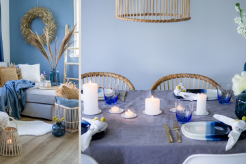 Über unserem Sofa habe ich eine Bilderwand arrangiert. Ein großes Einzelbild in der Mitte war hier der Referenzpunkt, links und rechts davon hab ich die restlichen Bilder angeordnet. Dabei achtete ich auf unterschiedliche Größen der Bilder sowie der Rahmen. Eine spannende Abwechslung ist es auch, wenn einige der Bilder ein Passepartout haben und andere nicht. Bei DEPOT gibt es eine große Auswahl an Bilderrahmen in vielen Größen und Farben, schaut mal hier. Da mein Sofa eine sehr dominate Farbe hat, wollte ich an der Wand für mehr Ruhe sorgen, und entschied mich daher für gedecktere Farben und Rahmen. Die botanischen Prints verströmen Ruhe und harmonieren farblich untereinander perfekt. Links und rechts des großen Bildes sind je drei Bilder aufgehängt, die Symmetrie wirkt beruhigend auf den Betrachter.