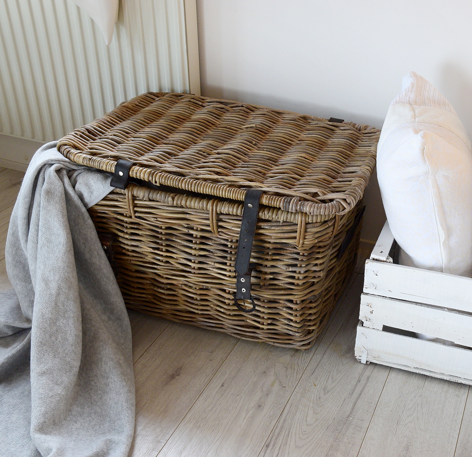 Hier im naturfarbenen Weidenkorb verstaue ich den Großteil der Decken. Somit bleibt Stauraum in der Wohnzimmer-Kommode frei und die Decken sind stets griffbereit neben dem Sofa. So sorgt dieser hübsche Korb für Ordnung und bringt nebenbei noch Gemütlichkeit ins Wohnzimmer.