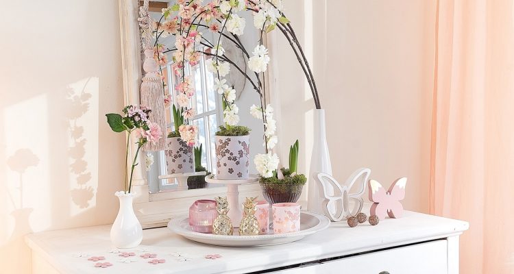 Frühlingsromantik pur: Ein Traum in Rosa und Weiß sind diese Kirschblütenzweige, die von echten Blütenzweigen kaum zu unterscheiden sind. Mit ihren biegsamen Zweigen verleihen sie unserer Frühlingsdeko einen romantischen Look. Tipp: Damit die langen und doch recht schweren Zweige einen guten Halt in der Vase finden, könnt ihr die Vase mit Sand befüllen. Somit besteht keine Gefahr, dass die Vase kippt.