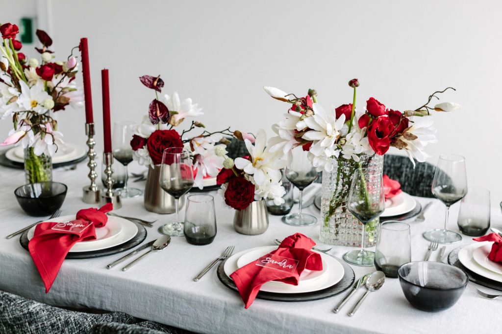5. Tischdeko zur Hochzeit: Tischdeko in Rot & Schwarz