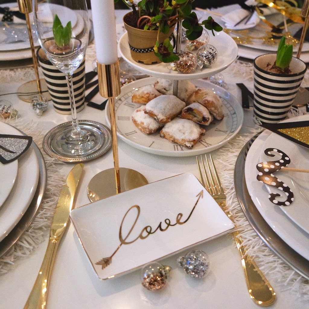 Nach dem Spiel ist vor dem Spiel….weiter geht es mit der Deko für die Silvesterparty und wo Ihr besonders schöne „Zutaten“ für die Silvester Party bekommt…Die beste Dekozeit des Jahres verlängert sich durch das Silvesteressen oder die Silvesterparty. Denn hier kann man auch noch mal aus den Vollen schöpfen, was die Deko angeht. Silvester sind die Farben bei uns immer Gold, Silber, Weiß und Schwarz. Das sieht immer ein wenig festlich aus und mit viel Glitzer geht es ins neue Jahr.