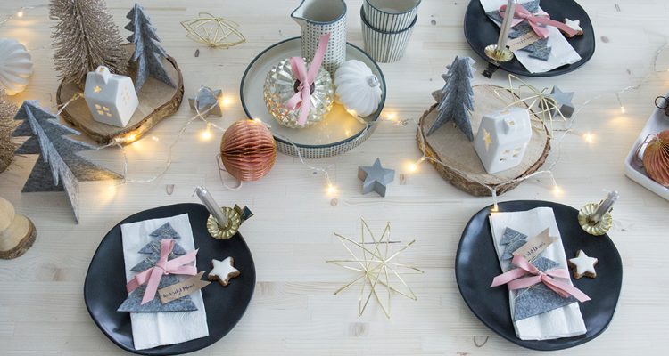 Weihnachten rückt in immer größeren Schritten näher und die erste Feierlichkeit rund um Weihnachten steht auch kurz bevor – Nikolaus. Wer sagt, dass man nur zu Weihnachten seinen Gästen eine schön gedeckte Tafel präsentieren kann, der irrt sich. Ich bin ein ganz großer Fan von Tischdekorationen und so finde ich, dass eine Tischdekoration zum Nikolaus in den Trendfarben Grau und Rosa absolut ihre Berechtigung hat.