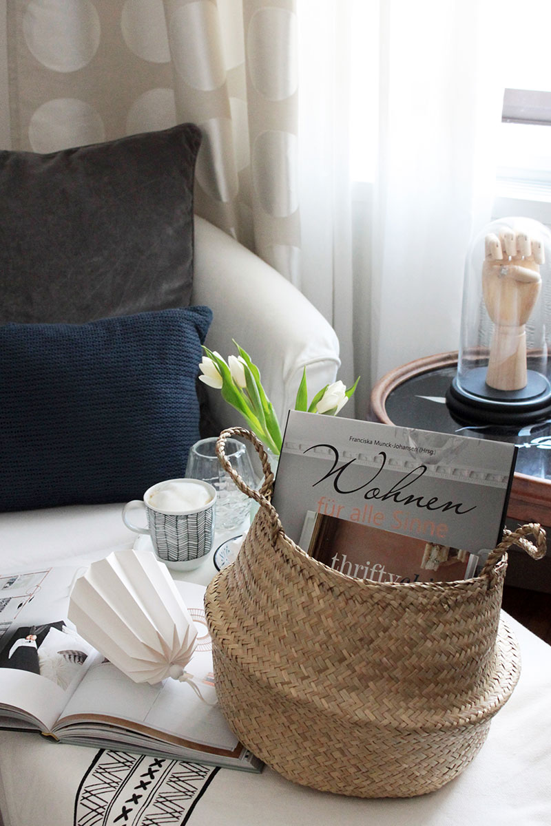 Ich liebe diese Körbe. Ich besitze auch schon einen und bin immer wieder begeistert. Deine Bilder sind wunderschön. Die Farben die Kissen die Deko alles genau mein Stil.