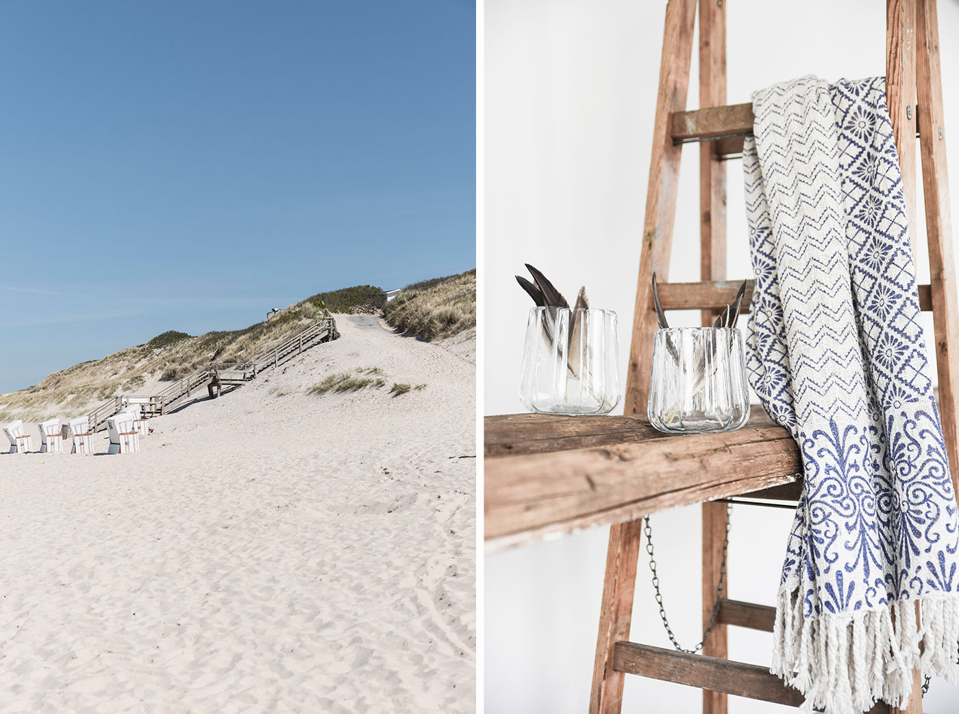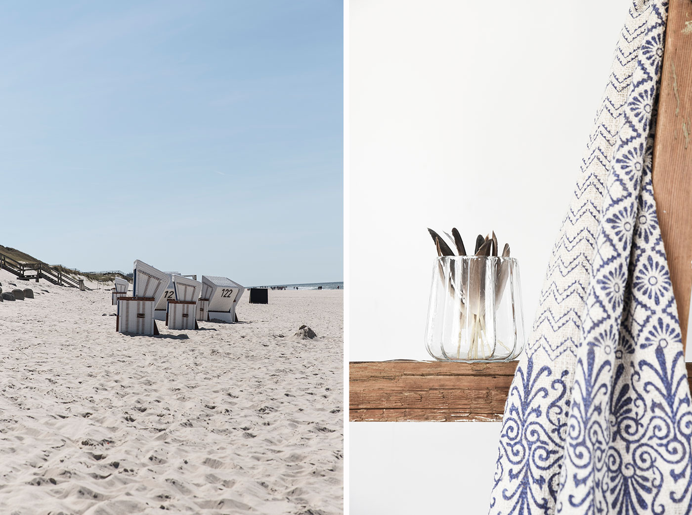 Mit Sack und Pack geht es an den Strand. Auf Sylt bietet der Strandkorb Schutz vor dem kalten Nordseewind. Scheint die Sonne fest vom Himmel, kann man eine Sommerdecke auf den warmen Sandstrand ausbreiten. Bei dem Gedanken steigt mir der Geruch von Sonnencreme in die Nase und lässt mich in Erinnerungen an vergangene Strandtage schwelgen. Diese Erinnerungsmomente möchte man festhalten, wie geht das besser, als mit einer maritimen Dekoration. Sommerliche Decken mit Ornamenten, die an friesische Kachelmuster erinnern oder an Ornamente aus dem Mittelmeerraum, bringen dezent Strandflair in eure vier Wände. Welcher Strand steht auf eurer Traumliste?