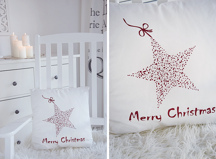 Heitere Weihnachtsstimmung verbreitet dieser rot-glitzernde Stern auf dem weißen Kissen von DEPOT. Die Aufschrift „Merry Christmas“ erinnert uns, dass Weihnachten nicht mehr weit ist. Ich liebe Kissen mit fröhlicher Aufschrift, sie versprühen gute Laune und übermitteln kleine, freundliche Botschaften. Während der kalten Jahreszeit verwende ich sehr gerne dieses weiße, kuschelige Fell. Es strahlt eine angenehme Wärme aus und lädt zu gemütlichen „Schaukelstunden“in meinem Lieblings-Schaukelstuhl ein.