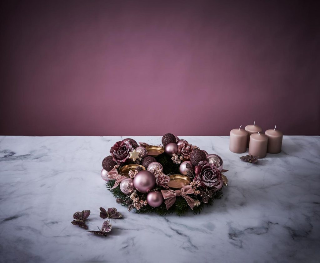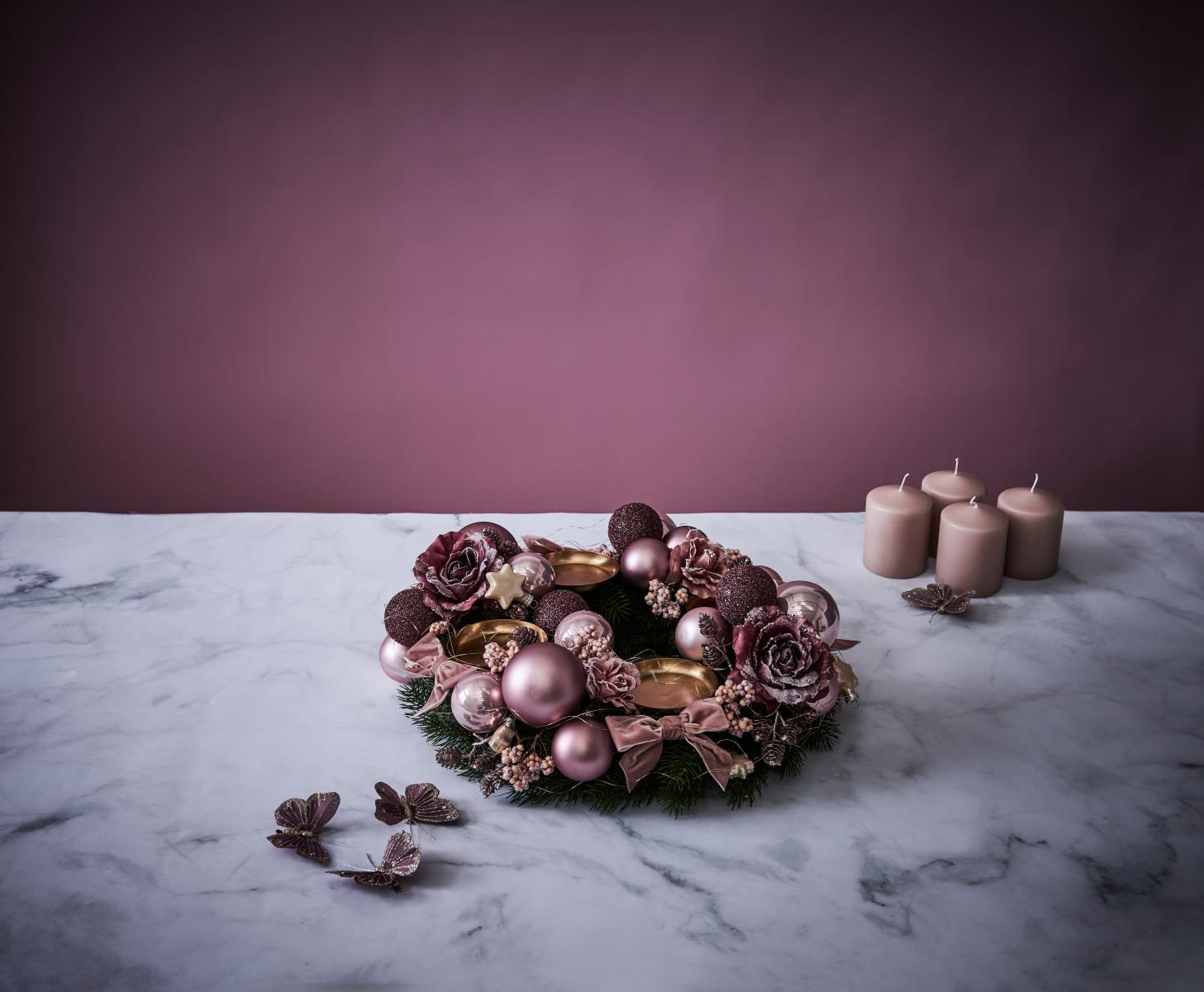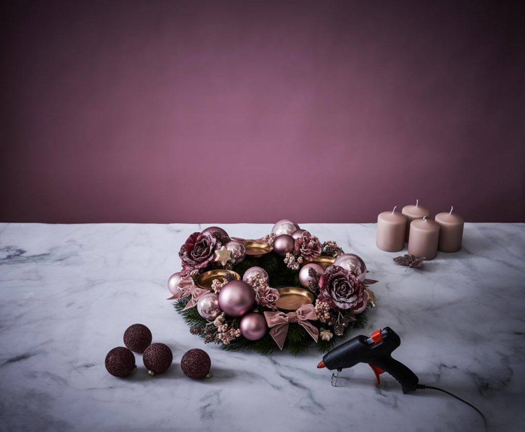 Nicht mehr lange, dann brennen wir die erste Kerze am Adventskranz an und leiten damit die schönste Zeit im Jahr ein – Weihnachten! Auf unserer Reise in die fünf ausgewählten Trend-Städte zeigen wir euch passende Weihnachtsinspriationen zu verschiedenen Weihnachts-Hotspots. Nächste Station: Paris! Es wird romatisch, elegant und verspielt. Diese Weihnachtswelt ist ein Traum für alle Romantiker. In dieser Anleitung zeigen wir euch, wie ihr den romatischen Paris-Style zu euch nach Hause holen könnt – mit einem Adventskranz aus Rosen, Samtschleifen und Glitzerkugeln!