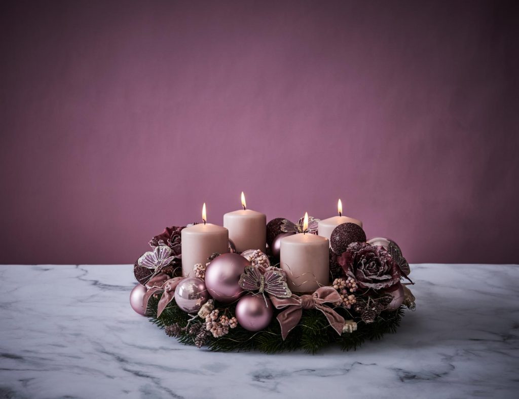 - Zum Schluss noch die Kerzen auf die Tüllen stellen – fertig ist euer Adventskranz im Paris Style!