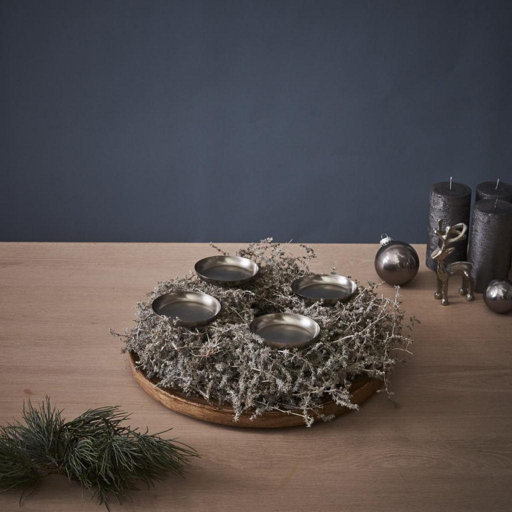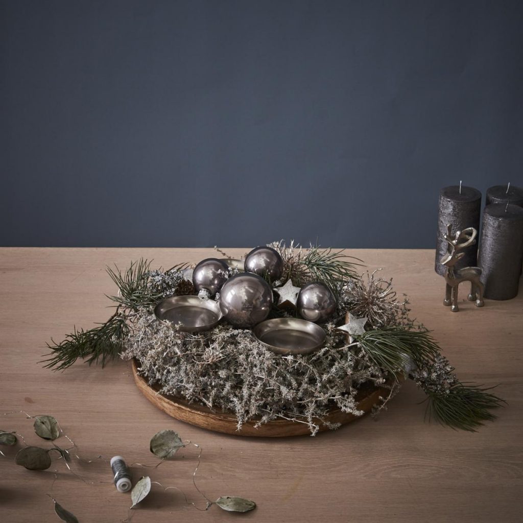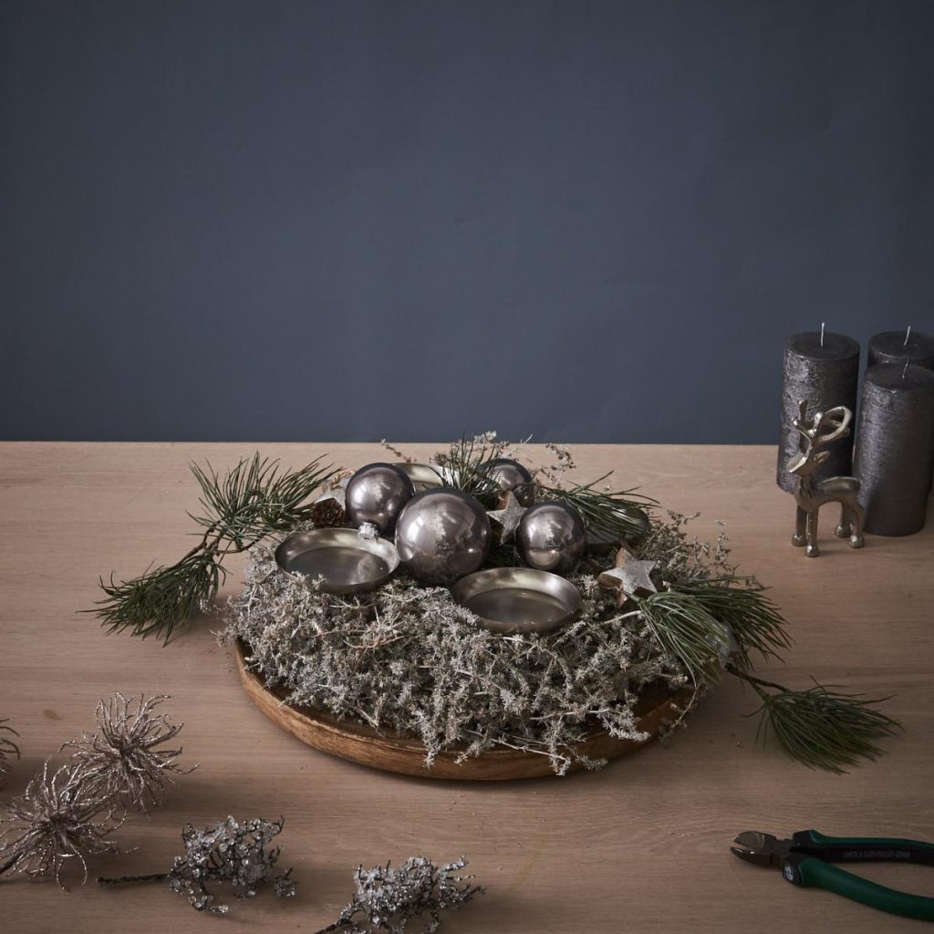 - Als letzten Schritt die Kerzen auf den Tüllen platzieren – fertig ist euer Adventskranz im Stockholm Style!