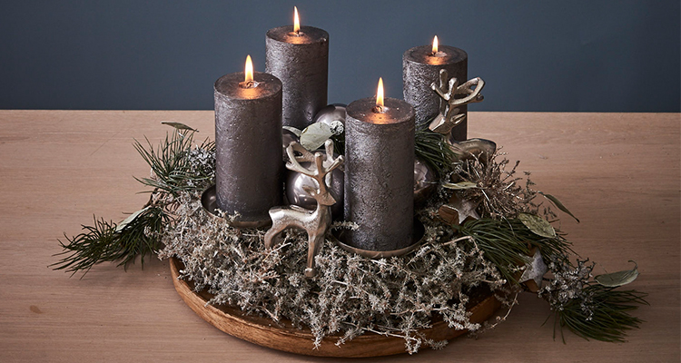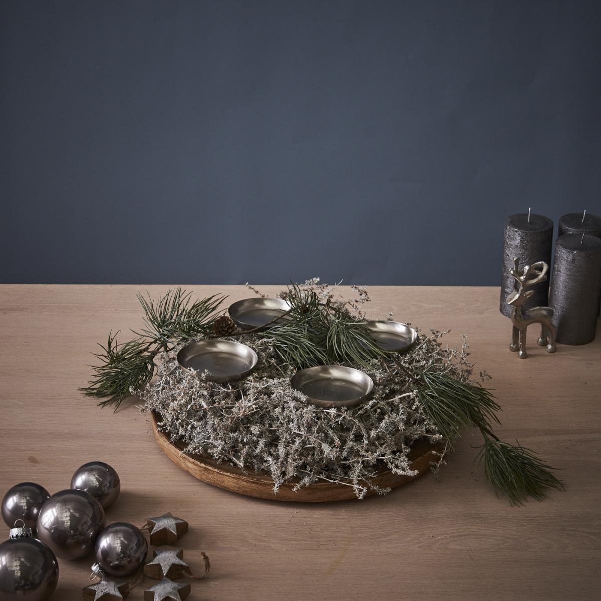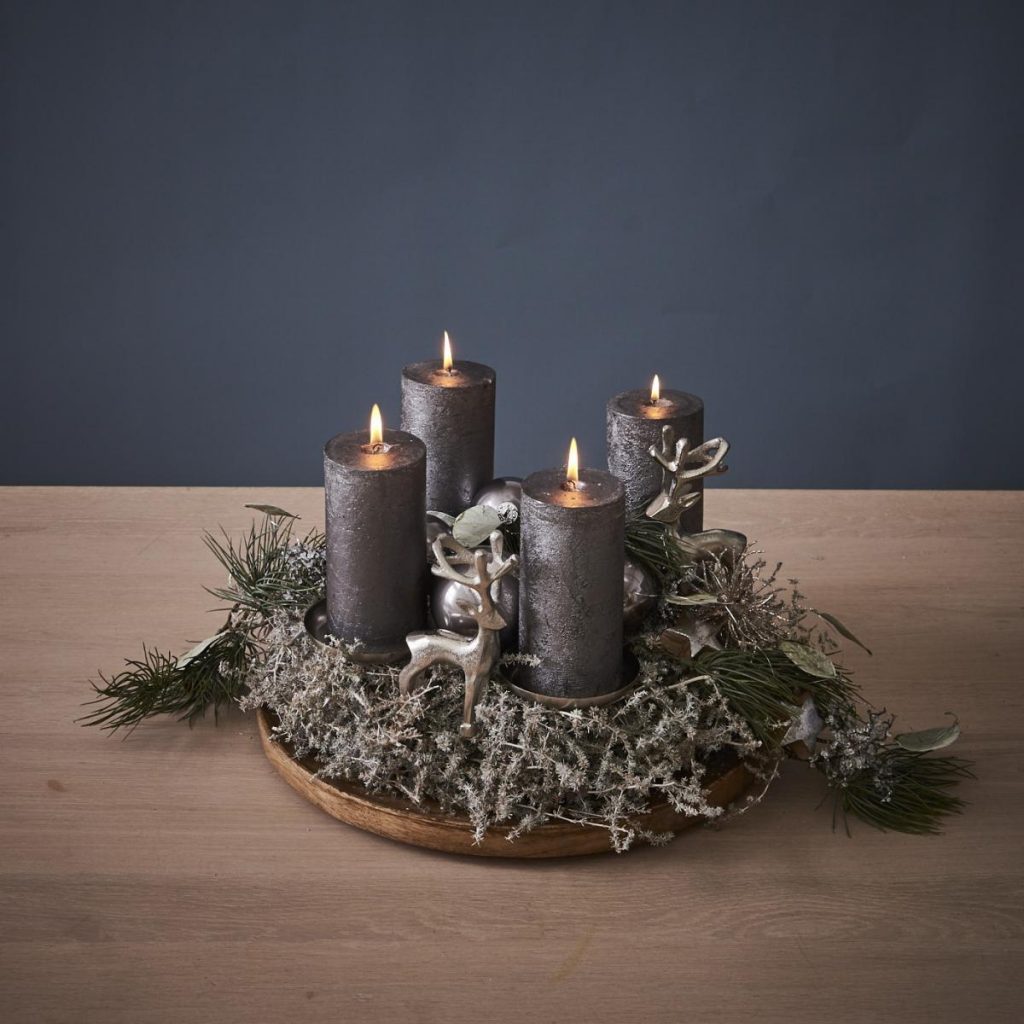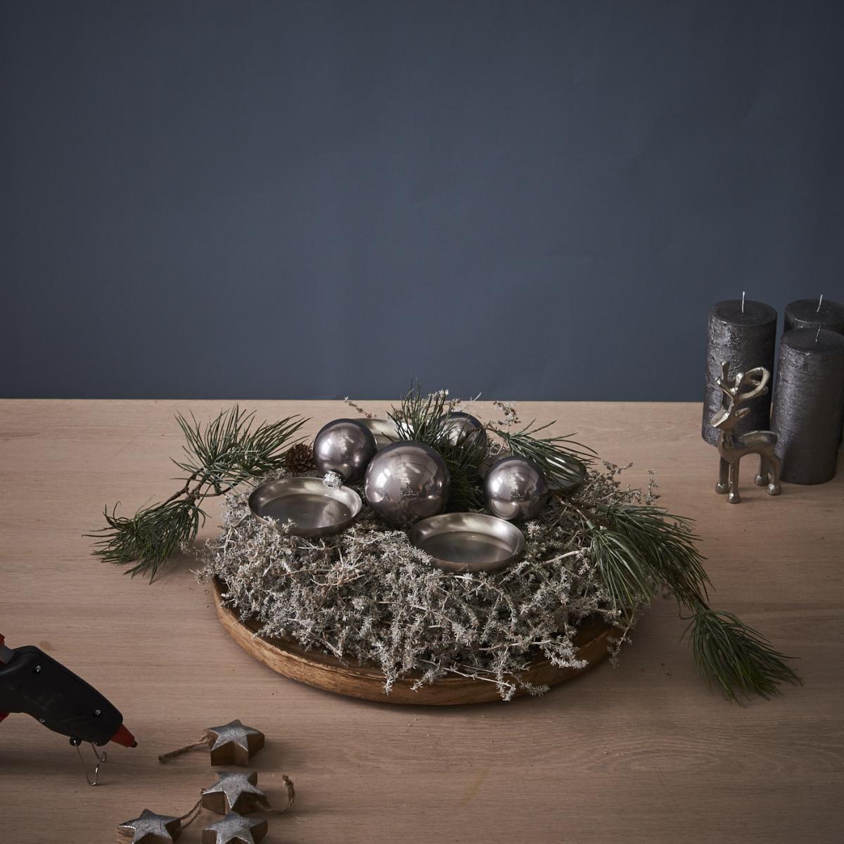 - Als letzten Schritt die Kerzen auf den Tüllen platzieren – fertig ist euer Adventskranz im Stockholm Style!