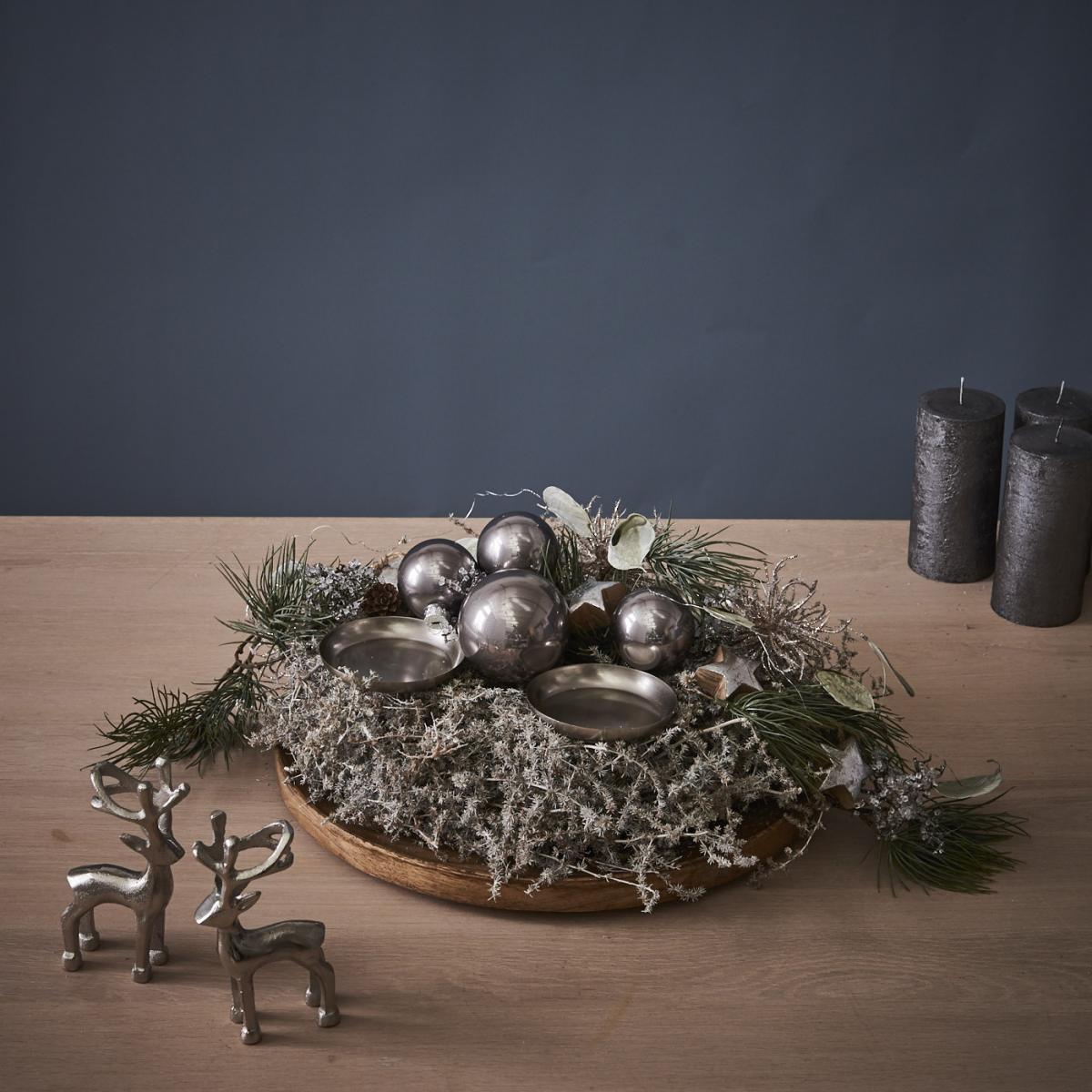 - Nun die kleinen Hirsche platzieren und ebenfalls am Adventskranz festkleben.